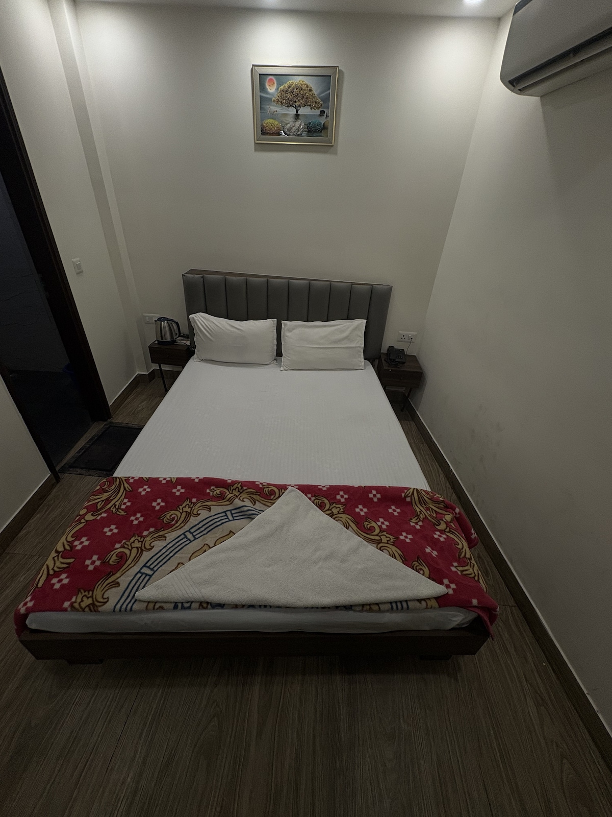 Eine kleine unabhängige Einheit in einer großen Wohnung, separate Einheit mit eigenem Eingang im 1. Stock. Keine Küche. Ruhe und Frieden in einer geschlossenen Gesellschaft mit mehreren Sicherheitsebenen. Einkaufszentren, Geschäfte, medizinischer Laden, Restaurants und U-Bahn-Station 500 m entfernt. Apollo Hospital-1.7KMS Jasola Vihar Metro-0.5KMS Ausstattung: 1 Schlafzimmer mit Klimaanlage 1 Esszimmer 1 westliche Toilette+Badezimmer WiFi Wasserkocher 2 Kissen 2 Decken RO Water (in Haushaltsflaschen) Kostenlose Wäscherei (2 Paare pro Tag) Mikrowelle Hygieneartikel KEIN HANDTUCH