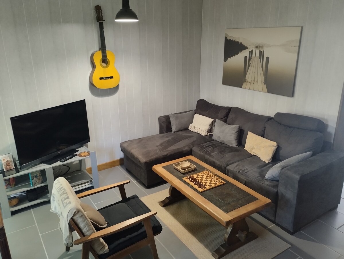 In der Nähe der Strände (St Jean de Monts, St Gilles Croix de Vie) und der Vendée-Bocage, in einer ruhigen Umgebung, aber in der Nähe aller Annehmlichkeiten, die die dynamische Stadt Challans bietet. Charmantes Haus von 36 m² mit großem Wohnzimmer (Wohnzimmer und voll ausgestattete Küche) Schlafsofa, 1 geräumiges Schlafzimmer mit 1 Doppelbett, großes Bad und separates WC. Große Sonnenterrasse (25 m²) und Parkplatz.