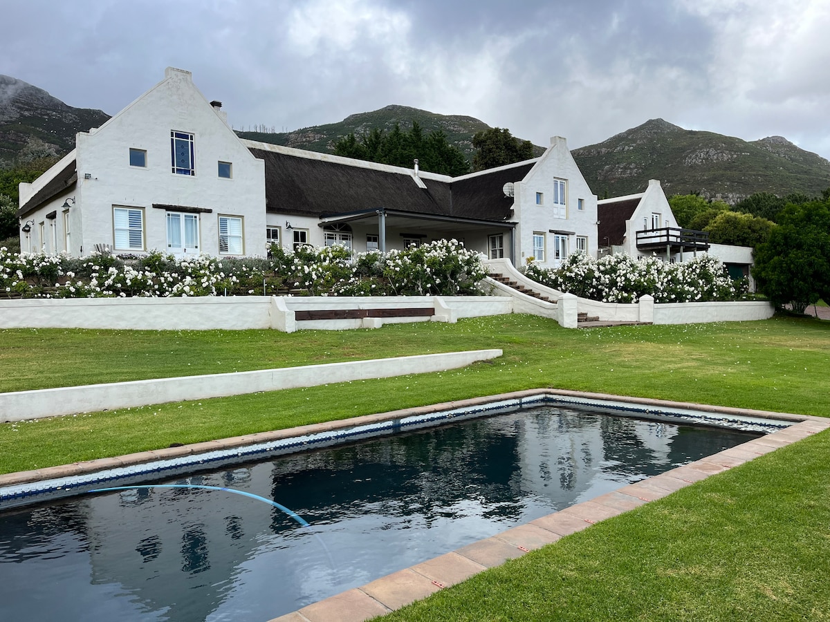 Entspanne dich in unserem charmanten Haus in Noordhoek, perfekt gelegen, um die Kap-Halbinsel zu erkunden. Genieße einen funkelnden Pool, einen üppigen Garten und geräumige Wohnbereiche sowie einen außergewöhnlichen Blick auf das Meer, die Berge und die Weinberge. Ideal für Relaxtion-Suchende. Es liegt direkt neben einem atemberaubenden, bekannten Weinberg. Nur 2 Gehminuten vom Noordhoek Farm Village und nur 5 Fahrminuten von einem der beeindruckendsten Strände von Kapstadt entfernt.