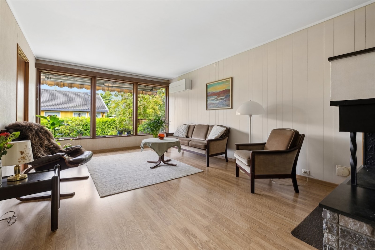 Ein friedlicher Ort, um mit der Familie zur Ruhe zu kommen. Perfekt für Kinder, um frei zu spielen, während sich die Erwachsenen entspannen und amüsieren können. Zentral, 5 Gehminuten vom Zug nach Oslo entfernt (Dauer 25 Minuten). Hat alle Annehmlichkeiten: Internet, Parkplatz direkt vor der Tür, Waschmaschine/Trockner, großes Haus und Garten, alle Küchenutensilien/Geschirrspüler/Kaffeemaschine, Fitnessraum, Billardtisch, Sauna, Zugang zu privater/kleiner Hütte im Wald (1 km entfernt), Whirlpool, Trampolin, Spielplatz im Garten.