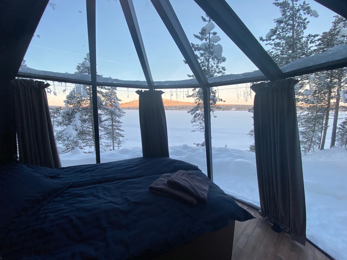 Aurora Hut liegt in einem Waldgebiet in der Nähe der Flussufer, mit Blick auf den Fluss Torneälven und den See Jukkasjärvi. Ein Grillplatz befindet sich ganz in der Nähe. Es gibt auch eine holzbefeuerte Sauna am Strand. Ihr Gastgeber ist Arne Bergh, Künstler, Designer und ehemaliger Creative Director des Icehotels für 20 Jahre.