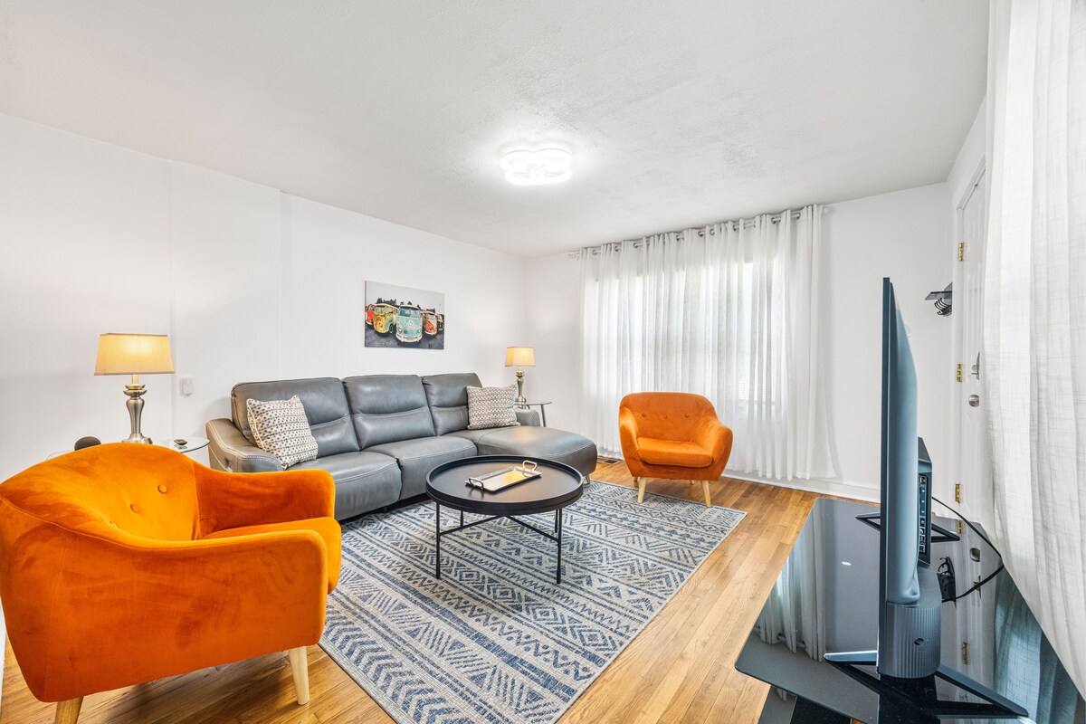 Dies ist eine Kellerwohnung in meinem persönlichen Haus mit eigenem separaten Eingang, Badezimmer und Küche. Parkplätze befinden sich auf der Straße vor dem Haus und es gibt einen Betonweg, der dich hinunter zum Eingang führt. Es ist eine Wohnung im Studio-Stil mit eigenem Thermostat, einem Kingsize-Bett, Deckenventilatoren, über 500 Quadratfuß und einem eingezäunten Hinterhof für deinen Welpen, wenn du einen mitbringst. Minuten von der Clemson University, T ED Garrison Arena, I85 und 40 Minuten von der Innenstadt von Greenville entfernt. Hulu Live wird im Fernsehen bereitgestellt