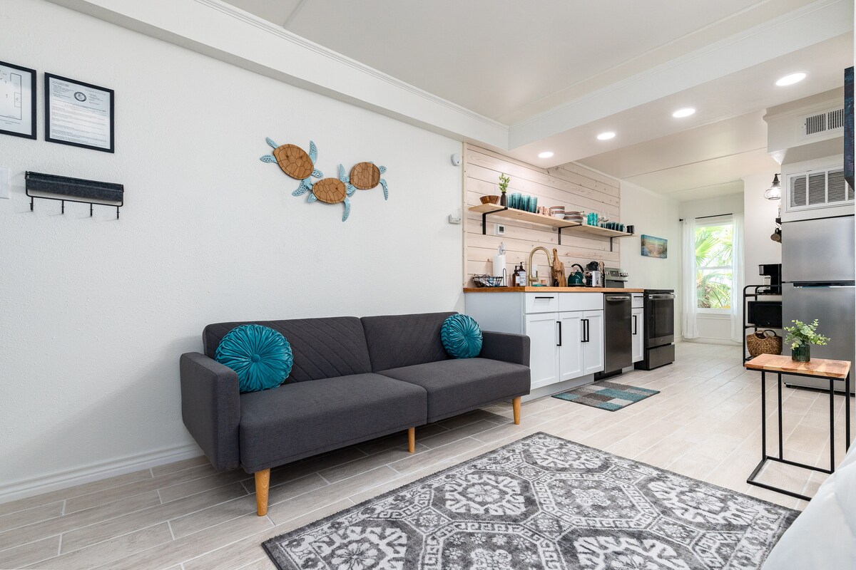 Erlebe einen ruhigen Kurzurlaub in diesem neu renovierten Studio im ersten Stock auf North Padre Island, nur 5 Gehminuten vom Strand entfernt. Dieses gemütliche Ferienhaus verfügt über ein zeitloses und schönes Design, einschließlich eines Kingsize-Betts und eines Queensize-Schlafsofas für bis zu 4 Gäste. Du wirst auch eine voll ausgestattete Küche, ein Badezimmer, einen Ess- und Wohnbereich mit 4K-TV genießen. Es gibt viele Gemeinschaftseinrichtungen wie Pool, Whirlpool, Sauna, Fitnessraum, Grill und vieles mehr. Genieße noch heute einen ruhigen Strandurlaub!
