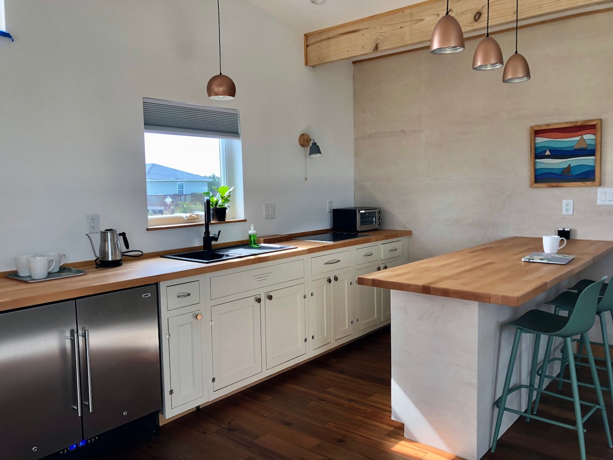 Dieses charmante Ferienhaus, das nur wenige Schritte vom Meer entfernt liegt, ist voller Charakter. Ursprünglich wurde es 1948 als Diner gebaut und zu einer charmanten Unterkunft für dich renoviert! Dieses kleine Ferienhaus ist 810 Quadratfuß groß, 1 Schlafzimmer mit Kingsize-Bett und 2 XL-Zweibettzimmer im Schlafsaal, 1 Queensize-Schlafsofa im Sonnenraum, 1 Badezimmer, mit einem offenen Wohn-, Ess- und Küchenbereich. Die Veranda ist ein beliebter Ort für Morgenkaffee oder abendliche Happy Hours!