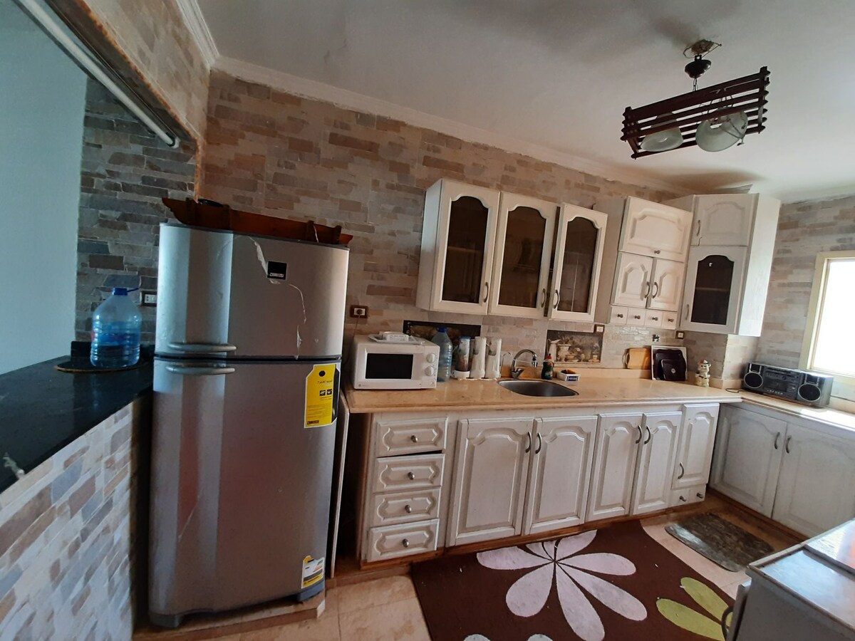 Gut gepflegte 3-Zimmer-Wohnung mit direktem Meerblick. Schöner großer Balkon mit Meerblick. Hauptschlafzimmer mit direktem Meerblick Voll ausgestattete Küche. 2 Schlafzimmer mit Klimaanlage Automatische Waschmaschine. Sehr schöne Möbel 3. Stock, offener Blick von allen Wohnungsfenstern Sicherheitsdienst rund um die Uhr. 20 km zum Flughafen Borg Elarab und zur Industriezone. 40 Minuten Fahrt in die Innenstadt von Alexandria. 350 m zum Strand. Sehr komfortables Wohnzimmer.