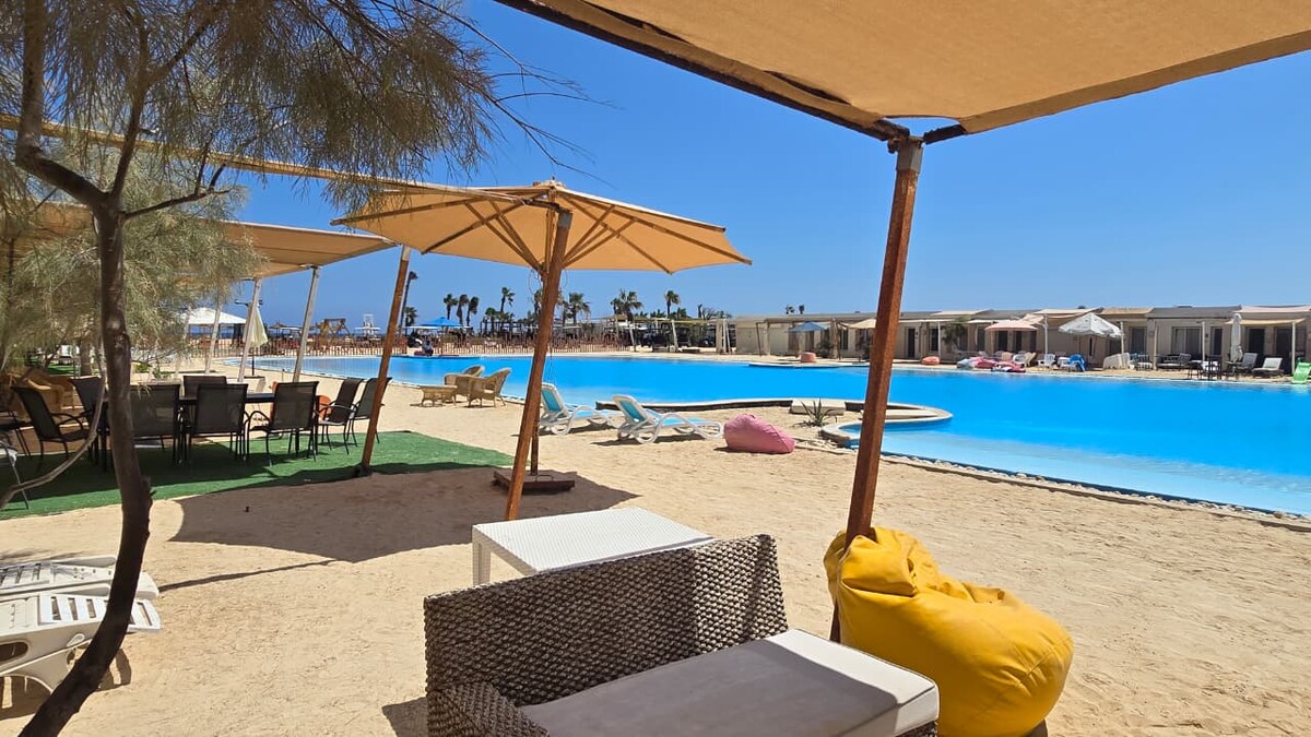 Dies ist ein Chalet / Apartment mit zwei Schlafzimmern im Badeort Montana an der Alexandria Matrouh Road 79. Voller Zugang zum Strand und 5 Swimmingpools ist inklusive.
