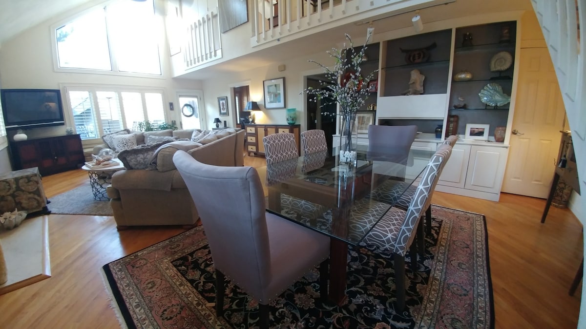 WENIGER ALS 1 MINUTE ZU FUSS ZUM WASSERRAND. Fantastisches Strandhaus mit 3 Schlafzimmern, 3 Bädern, Wohnzimmer-Esszimmer-Kombination mit gewölbten Decken, Küche, TV in 4 Zimmern, WLAN, großer Terrasse mit Weber-Grill mit Erdgas, Waschmaschine und Trockner. Toller Blick auf das Wasser, während du dich auf der Terrasse entspannst. Viele Annehmlichkeiten! Bring einfach deinen Badeanzug mit. Unsere Gäste haben alle gesagt, dass sie diesen Ort lieben! Ganz in der Nähe vieler Hochzeitslocations, Restaurants, State Park, Strandpromenade ist in der Nähe, Militärbasen, etc.
