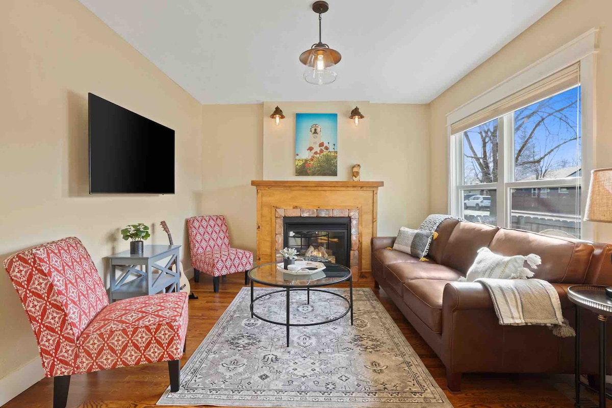 „Moderner Rückzugsort im Hyde Park von Boise!“ Das Hotel liegt im besten Block des Hyde Park, nur wenige Schritte von Restaurants, Cafés, Bars, Yoga und Fahrradverleihen entfernt. Dieses einstöckige Haus bietet eine voll ausgestattete Küche mit Edelstahlgeräten, stilvolle Wohn- und Essbereiche, zwei gemütliche Schlafzimmer, ein TV-Zimmer mit einem ausziehbaren Plattformbett und einen Arbeitsbereich. Zu den Ausstattungsmerkmalen gehören ein komplettes Badezimmer mit einer intelligenten Dusche, ein halbes Badezimmer, eine Nest-Temperaturregelung, ein eigenständiger Check-in, eine Feuerstelle und Parkplätze abseits der Straße für deinen Komfort.