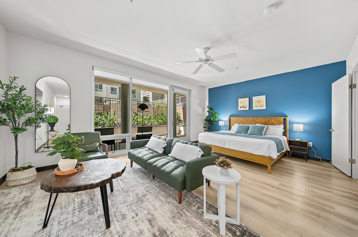Willkommen in deinem LA-Refugium! Diese schicke Studio-Wohnung in Burbank liegt nur wenige Minuten von den Universal Studios, Burbank Studios und Disney entfernt. Dieser Raum bietet müheloses Wohnen. Genieße stilvolle Möbel, eine voll ausgestattete Küche, WLAN und einen Smart-TV, Queensize-Betten, Wäscherei vor Ort, Parkplätze an der Straße und laufende Unterstützung. Komfort ist garantiert. Gegenüber von Whole Foods gelegen. Du bist im Herzen der pulsierenden Kultur von LA. Komm vorbei und lebe den LA-Traum! Einfache kostenlose Parkplätze an der Straße.