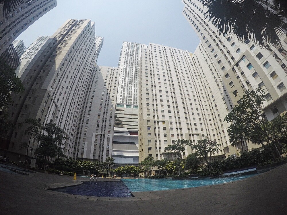 Μοντέρνο στούντιο, με έξυπνη και εργονομική διακόσμηση ώστε να αποδώσει τα μέγιστα ο χώρος! Ο χώρος διαθέτει queen size κρεβάτι και μεγαλο καναπέ. Η κουζίνα είναι πλήρως εξοπλισμένη. Το μπάνιο ανακαινισμενο με παροχή ζεστού νερού κσι νιπτήρα. Παρέχεται πρόσβαση σε τρεις πισίνες,μια μεγάλων διαστάσεων για ενήλικες και δύο μικρότερες για παιδιά, του συγκροτήματος. Επίσης υπάρχει ελεύθερη πρόσβαση στο γυμναστήριο και στη σάουνα στο ισόγειο . Το κέντρο της Τζακάρτα απέχει 5-6klm .