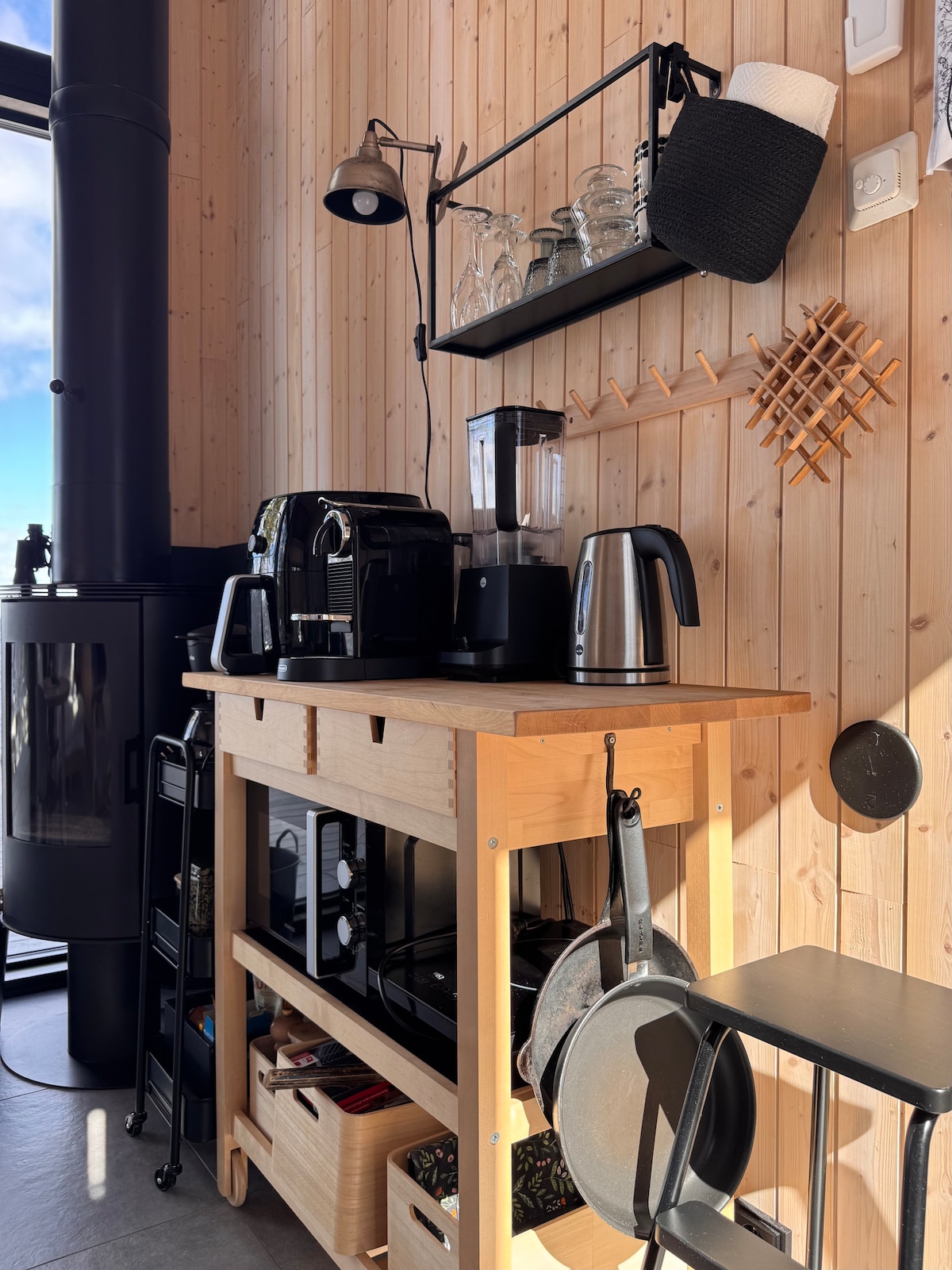 In einem Ferienhaus am Ufer einer dampfenden Frau verbringst du einen Urlaub mit einer einzigartigen Seelandschaft. Die holzbeheizte Sauna hat sanften Dampf und Blick auf den See. Fußbodenheizung und Kaminheizung im Winter. Zubereitung von Speisen mit einem Airfryer, in der Mikrowelle oder auf der Terrasse mit einem Gasgrill. Trinkwasser kann direkt aus dem Küchenhahn bezogen werden. Gäste haben Zugang zur gesamten Hütte, die Schlafgelegenheiten für zwei Personen, eine Sauna, eine Toilette und eine kleine Küche umfasst. Eine Luftwärmepumpe sorgt für die richtige Innentemperatur. 13 km zum Zentrum. 8 km zu Lebensmittelgeschäften.