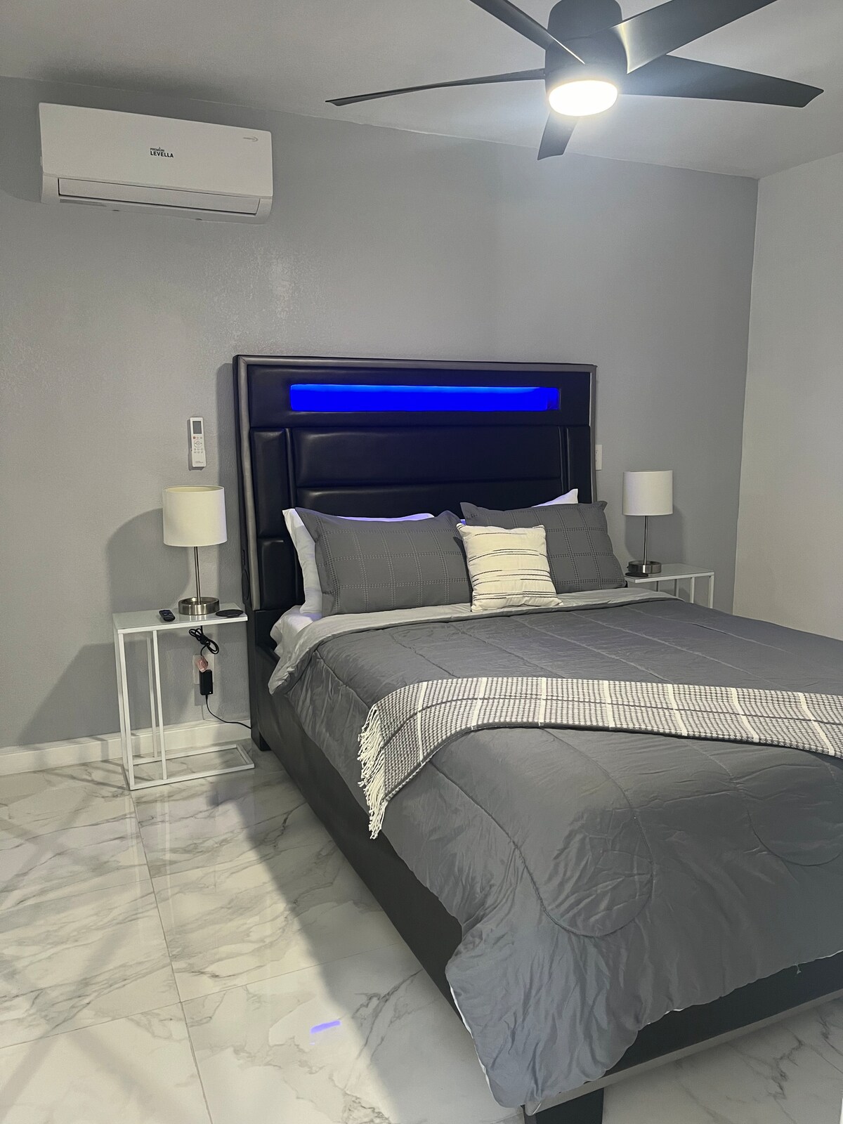 Dieser Ort ist einzigartig und hat seinen eigenen Stil. Gästehaus mit Bad, Küche, Waschküche, fabelhaft für einen Kurzurlaub zu zweit, ideal zum Ausruhen und Entspannen. Es liegt in einem Wohnviertel mit Restaurants, Geschäften, Tankstellen, alles innerhalb von 5 Minuten. Kürzlich abgeschlossene Renovierung mit allem, was du brauchst, um einen komfortablen Aufenthalt zu genießen. Eine super moderne Wohnung mit intelligenten Lichtern und einem geräumigen Queensize-Bett. Alles im Detail für den Komfort der Gäste.