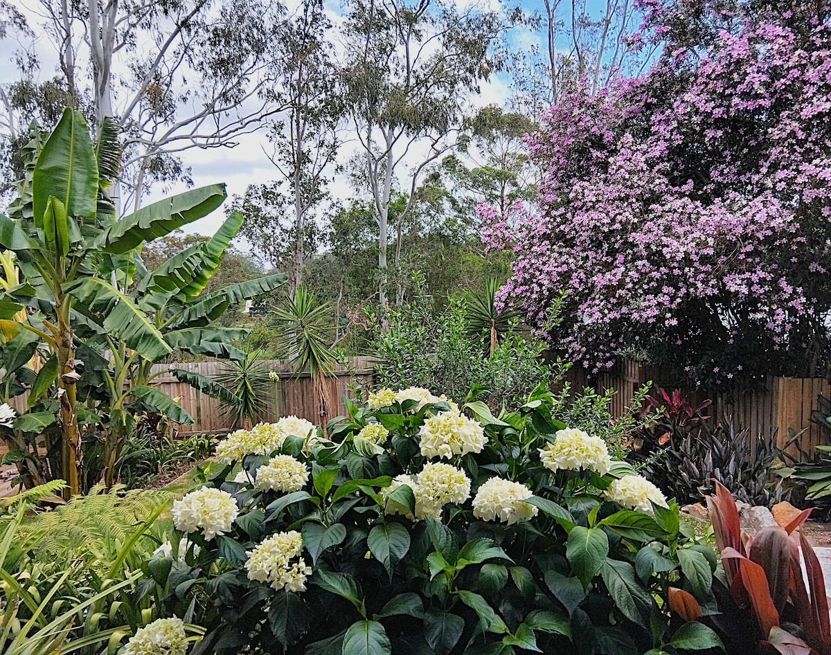Dieses Haus liegt hoch in Maleny, nur einen Steinwurf von feinem Essen, Galerien und einzigartigen Geschäften entfernt. Die üppige einheimische Flora schafft die ruhige Illusion, im Baldachin eines Regenwaldes zu leben. Es ist ein entspannendes 2-stöckiges Haus mit einem atemberaubend großen Hauptschlafzimmer. Du wirst versucht sein, das ganze Wochenende im Bett zu bleiben... aber hey, die Naturwunder von Maleny warten. Keine Preiserhöhung an Wochenenden, besonderen Veranstaltungen oder bei der Anzahl der Gäste. 100 % unserer Gäste haben ihren Aufenthalt mit 5 STERNEN bewertet. Bleibe und erlebe es selbst.