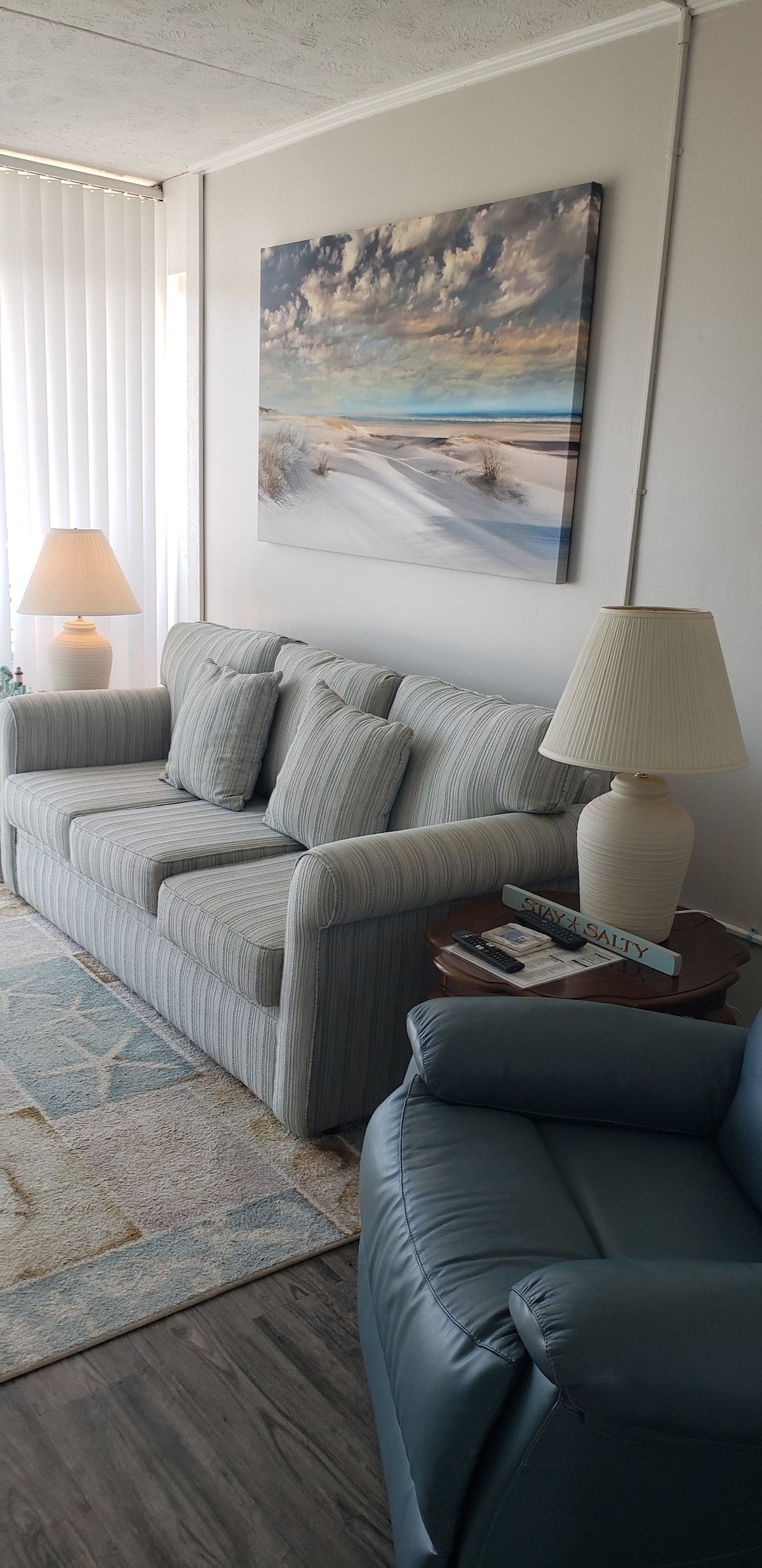 Geräumige 1450 Quadratfuß große Eigentumswohnung im 1. Stock mit ATEMBERAUBENDEM Meerblick von jedem Hauptwohnbereich, einschließlich Hauptschlafzimmer und einem Meerblick von einem zweiten Schlafzimmer. Diese Wohnung fühlt sich an wie ein Zuhause mit 7 großen Fenstern, einem großen Balkon mit Meerblick und Zugang vom Wohnzimmer und der Küche sowie einem seitlichen Balkon mit Meerblick neben dem Hauptschlafzimmer. Voll ausgestattete Küche. Großer Pool am Meer, Sonnenterrasse und Außendusche. Du bist nur wenige Gehminuten von der Main Street, North Myrtle Beach, entfernt.