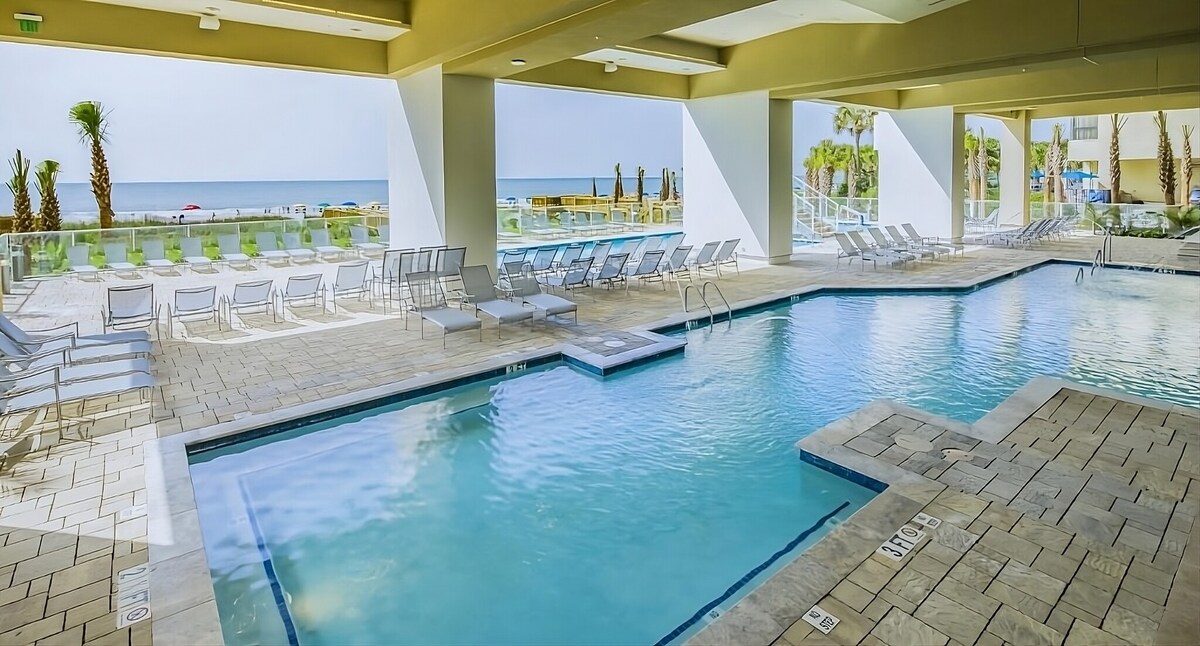 Genieße eine elegante Entdeckung in diesem herausragenden Resort am Meer in Myrtle Beach. Du wirst den Blick auf den Atlantik und den einfachen Strandzugang von unserem Resort aus lieben, nur zwei Blocks von der Promenade und vier Blocks vom SkyWheel entfernt. Im Umkreis von einer halben Meile von uns gibt es eine große Auswahl an Restaurants und Unterhaltungsmöglichkeiten gibt es eine große Auswahl an Restaurants und Unterhaltungsmöglichkeiten und wir haben zwei Pools, einen Kinderbereich, eine Poolbar und ein Restaurant am Meer.