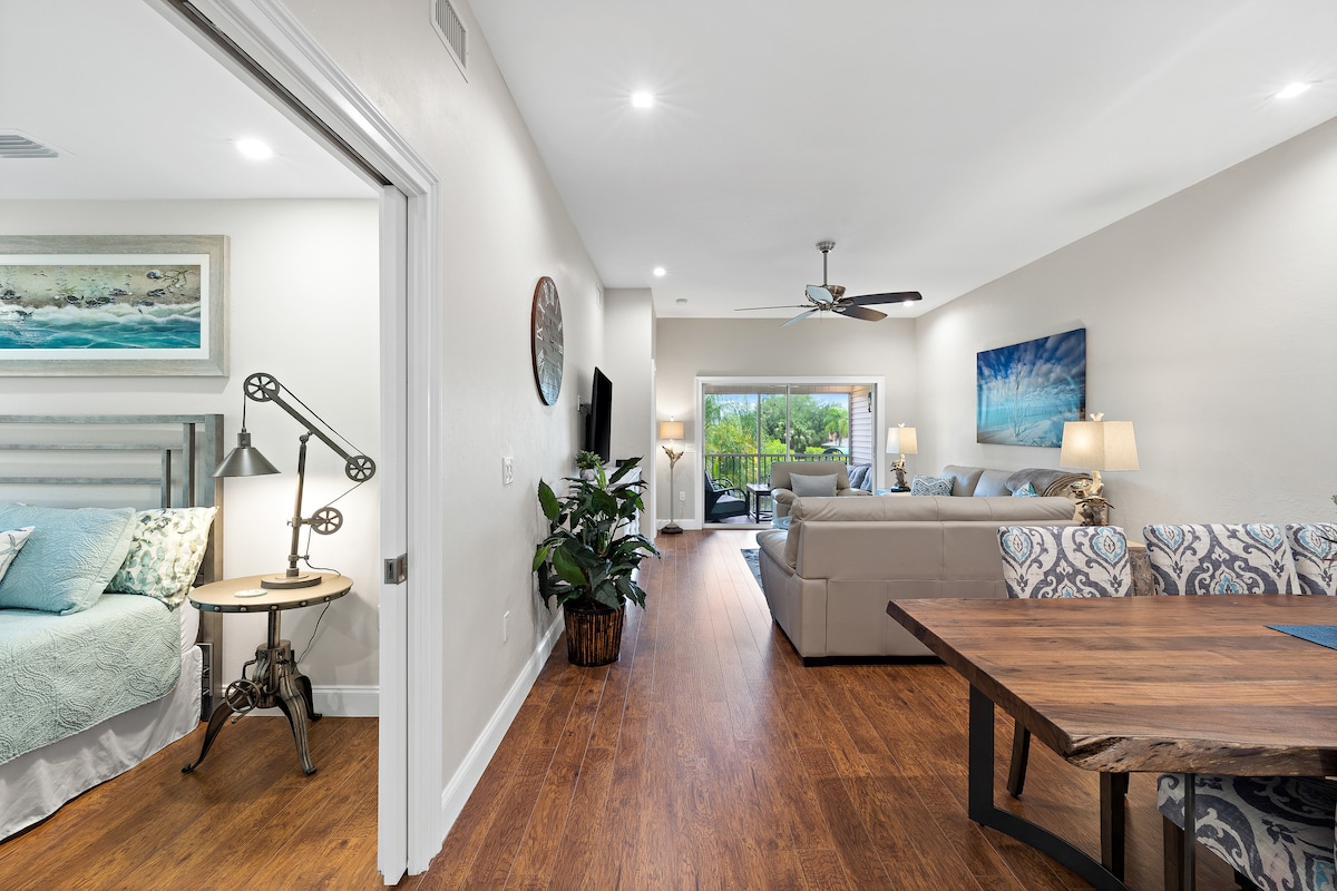 Fully remodeled corner-unit condo with stunning Gulf and beach views, redesigned in 2025 for flexible living. Sleeps up to four with a semi-private king sleeping area and a queen pullout sofa in the family room. Enjoy luxury coastal interiors, a screened lanai with sunset views, and a three-minute walk to Bonita Beach and Doc’s Beach House. Onsite amenities include two pools (1 adult and 1 kid), tennis, pickleball, and bocce ball courts and a community gas grill.