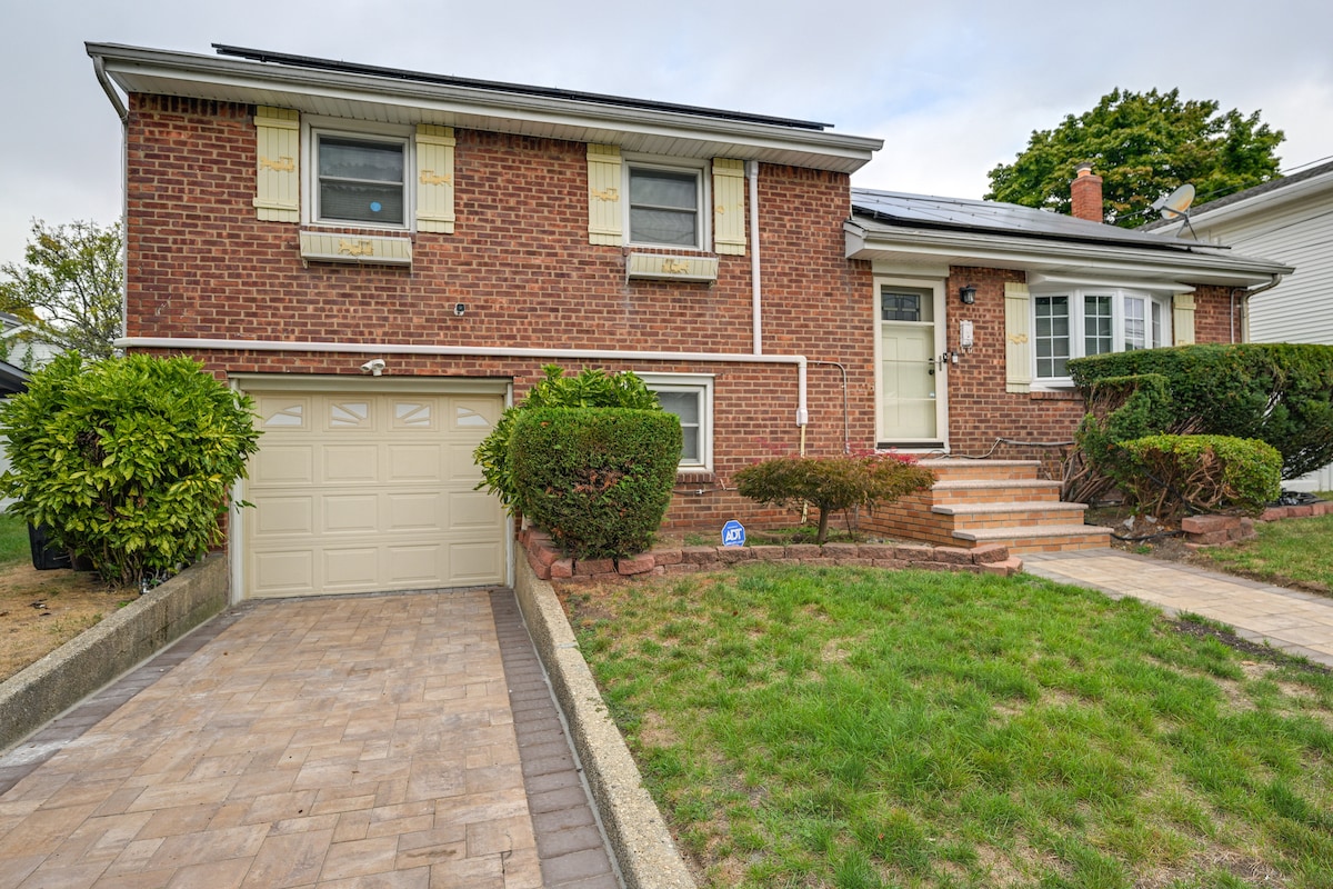 Tolle Unterkunft auf der unteren Etage, bietet bequem Platz für bis zu 4 Personen mit 1 Badezimmer zum Übernachten, in der Nähe des Belmont Parks, der UBS ARENA und des Flughafens JFK WLAN, Netflix, Mikrowelle, Kaffeemaschine, Schreibtisch, Essbereich, Kühlschrank, ein Queensize-Bett, ein Schlafsofa, ein Doppelbett und eine Waschküche Privater Eingang, kostenloser Parkplatz für ein Auto in der Einfahrt, unter Reservierung (kann nach 2 Uhr morgens nicht auf der Straße parken). Überwachungskameras in der Unterkunft auf dem Grundstück. Ich werde während deines Aufenthalts dein Gastgeber sein und du wirst genügend Privatsphäre haben.