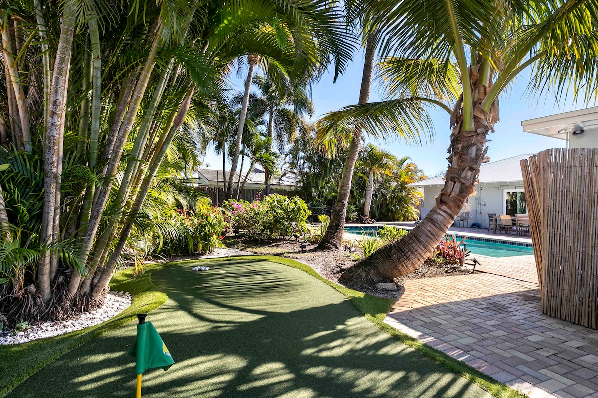 Ruhiges Haus mit Pool, Spa, Außendusche in der Nähe von Stränden und nur wenige Gehminuten vom Intercostal entfernt. Dieses Haus verfügt über einen neuen maßgeschneiderten Pool und ein Spa, eine schöne Küche, eine Außenterrasse mit Grill und einen angelegten Hinterhof. Es gibt viele tolle Restaurants und Einkaufsmöglichkeiten in der Nähe. Es gibt einen Park nur 5 Gehminuten entfernt, wo du Zugang zu den Interkostalen, den Tennisplätzen und einem kleinen Strand hast. Die Nachbarschaft ist sehr ruhig. Die Unterkunft ist nicht für Kinder geeignet.