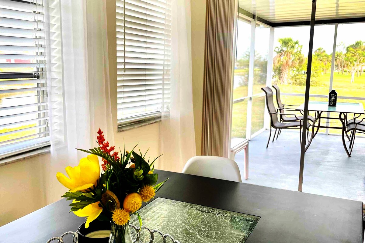 Willkommen in deinem zweiten Zuhause! Dieses stilvolle Haus mit einem Schlafzimmer bietet eine voll ausgestattete Küche, einen Smart-TV, Highspeed-Internet und ein ultra-bequemes Kingsize-Bett von Sleep Number. Genießen Sie den Komfort einer Waschmaschine und eines Trockners in der Unterkunft und erkunden Sie alles, was die Gegend zu bieten hat – nur eine kurze 30-minütige Fahrt zu den schönen Stränden von Boca Grande und Englewood. Genieße den bequemen Self-Check-in und den kostenlosen Kaffee und die Pflegeprodukte. Komfort, Stil und Lage in einem perfekten Aufenthalt.