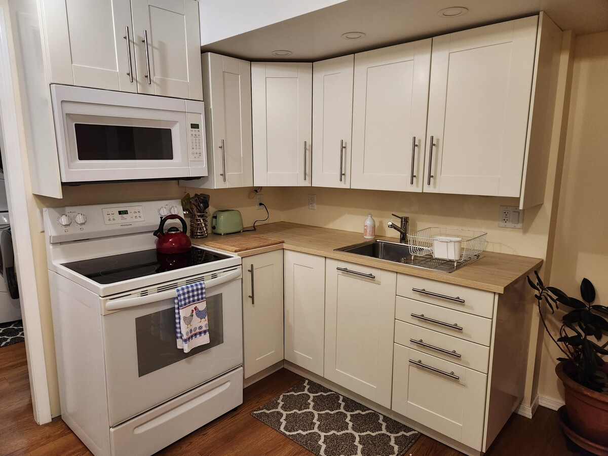 Genieße unser schönes, einstöckiges Gästehaus mit zwei Schlafzimmern in der begehrtesten Lage des Cowichan Valley. Eine voll ausgestattete Küche mit Doppelbackofen, Gasherd, Geschirrspüler, Kühlschrank, Mikrowelle, Kaffeemaschine, Toaster und voll ausgestattet mit Utensilien und Zubehör. Minuten vom Highway 1 entfernt in einer neuen Wohnsiedlung, umgeben von Douglasien. Mehrere Weingüter in der Nähe, Kerry Park, 4 Minuten Fahrt zum Shawnigan Lake & Mill Bay Plaza! Ein perfekter Ort zum Entspannen und Genießen all der wunderbaren Angebote von Vancouver Island.