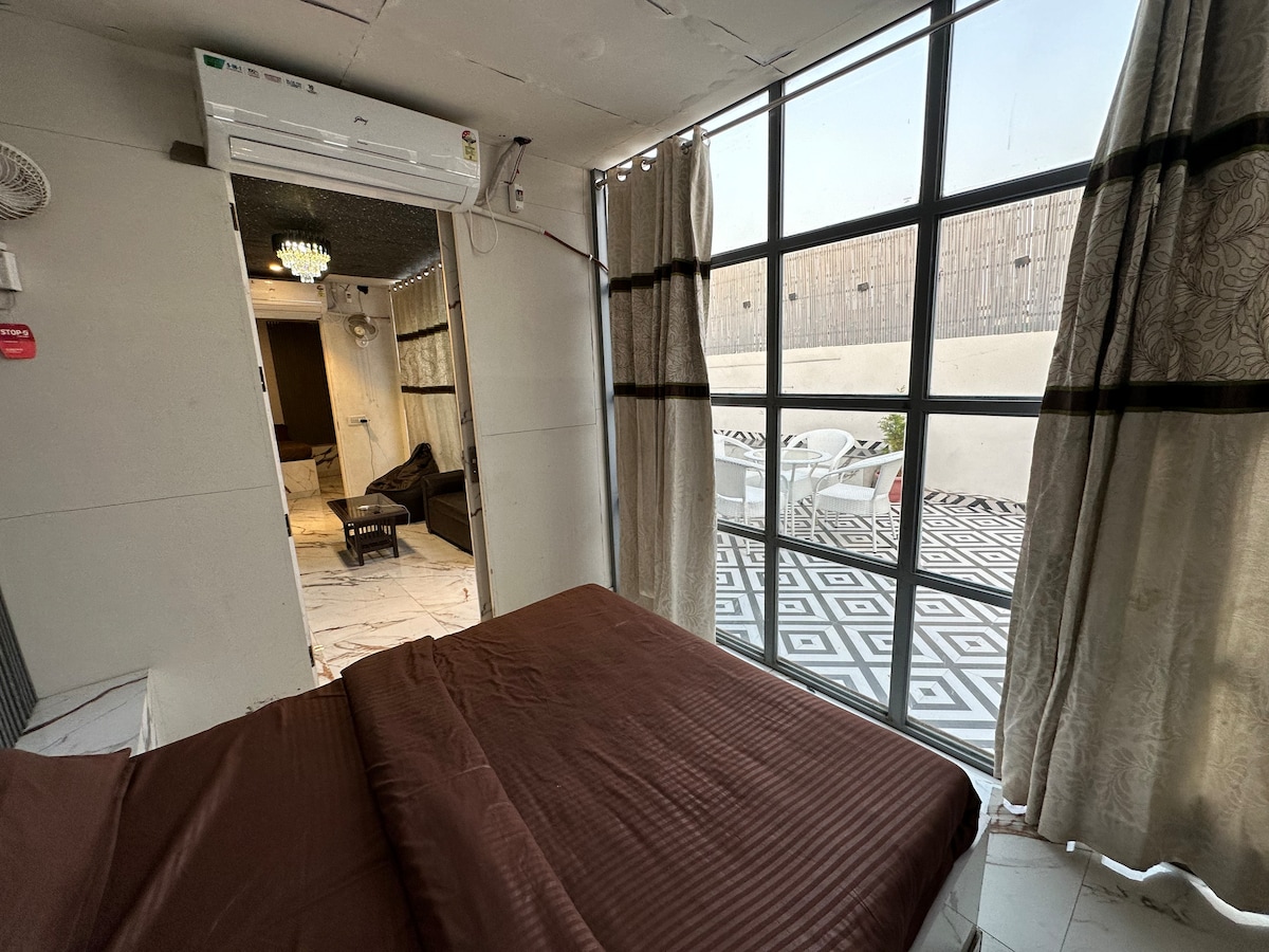 Diese stilvolle Terrasse mit zwei Zimmern und einem Wohnzimmer ist ideal für kleine Gruppen, um Geburtstag ,Jahrestage , Bachelor, Abschied usw. zu feiern. Die Unterkunft befindet sich im Core of West Delhi, C1 Block Janakpuri, der eine großartige Anbindung von U-Bahn, Auto und Taxis bietet, da sich die Unterkunft an der Hauptstraße von Janakpuri befindet und sehr gut zu erreichen ist. Jede Art von Einrichtung und Gastronomie ist vorhanden. Zusätzliche Gästezimmer werden gegen einen Aufpreis berechnet. Viele Grüße. iG Desires_co_in