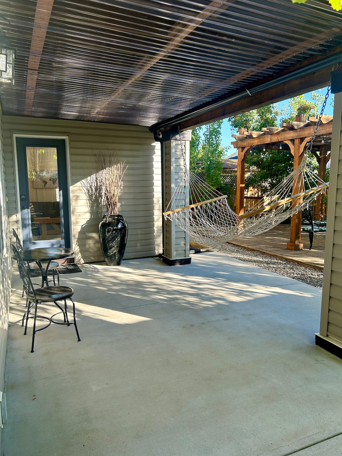 Modern full, bright, high ceiling basement suite. Separate entrance. It features tasteful décor and new appliances. Relax on the spacious sofa in front of the fireplace. Or enjoy the sunshine on the patio with comfortable patio furniture. In the evening enjoy the outdoor gas fireplace or take a dip in the hot tub. When you're ready for bed, an exceptionally comfortable queen bed awaits you. We are located next to the highway, and 5 mins from the airport.