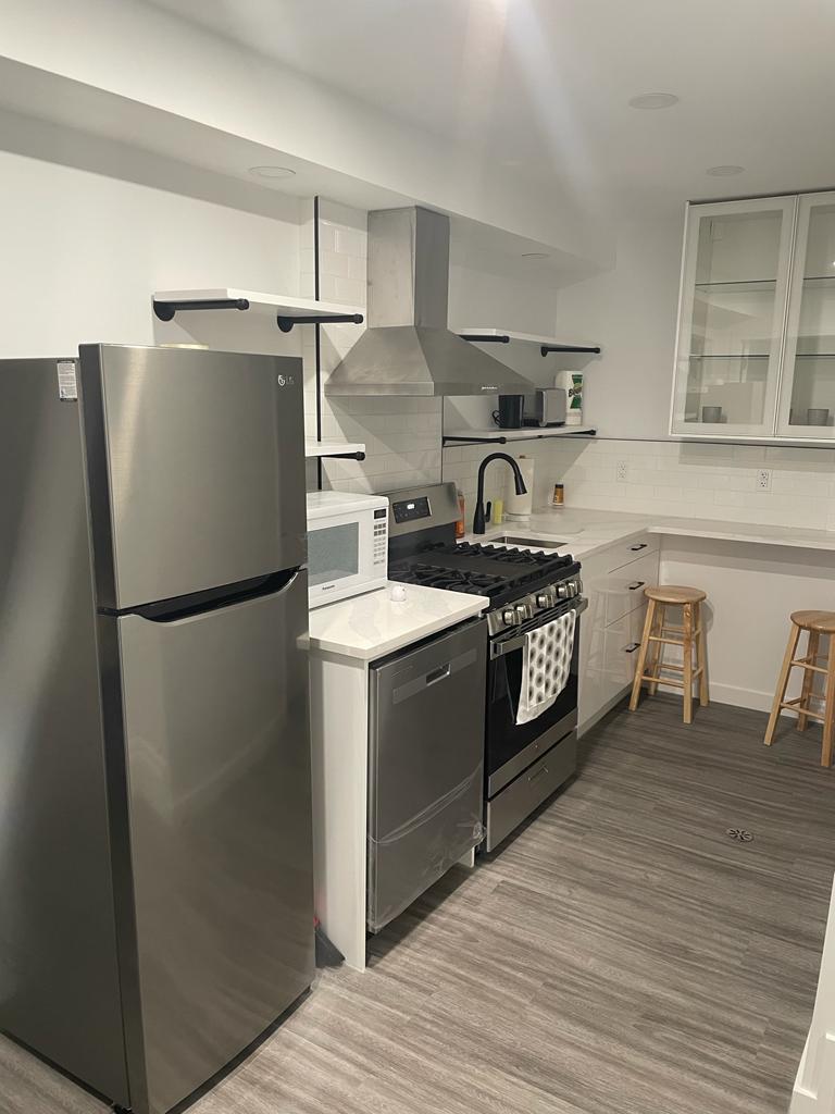 Secondary Suite (basement). Private, sunken patio. 9' ceilings and full height windows lets the south facing sun pour into the spacious suite. Professionally designed to suit tenants looking for high end finishes and amenities throughout, including: Hardwood Flooring (with infloor heating), Dekton Countertops, Custom Kitchen. 9' ceilings, in-suite laundry, fully tiled shower with bench and rain shower. Located in Old Strathcona, steps from the Mill Creek Ravine.