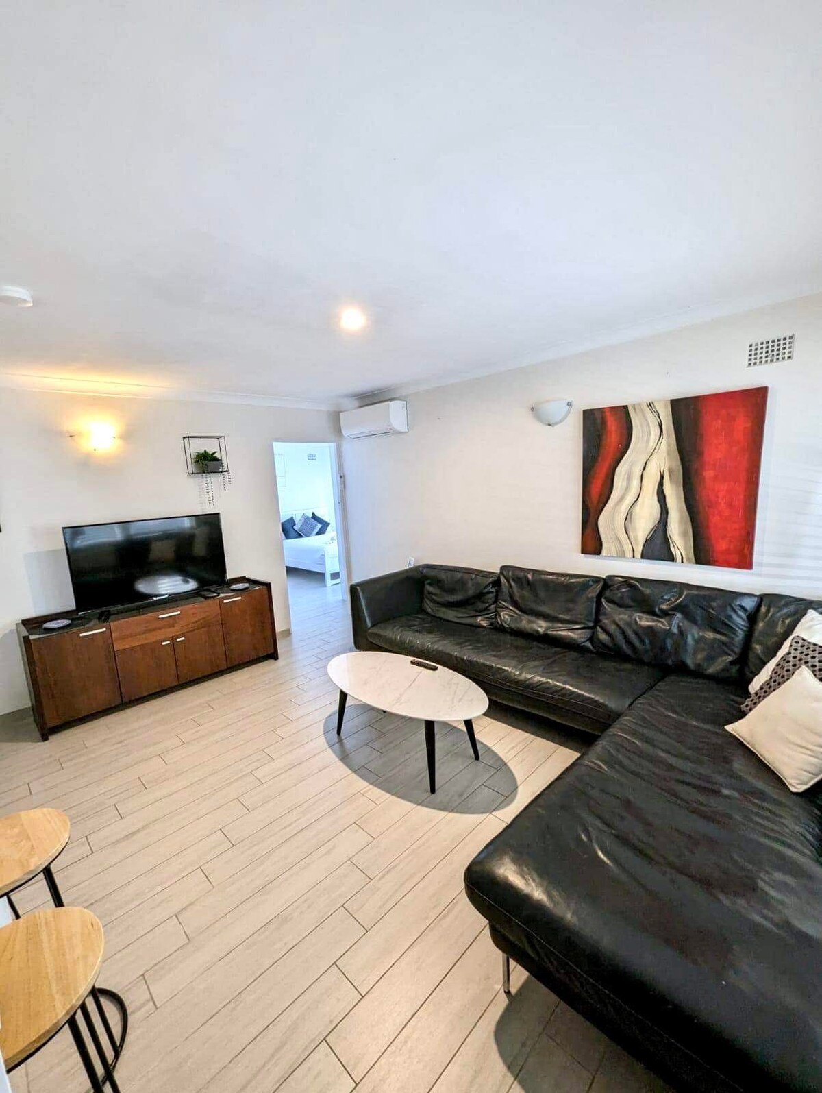 Genieße ein stilvolles, schönes Apartment mit einem Schlafzimmer, klimatisiert mit Queensize-Bett, hochwertigen Möbeln, elektrischen Geräten und einer voll ausgestatteten Küche und Waschküche. Alles, was du für einen angenehmen Aufenthalt brauchst, ist inbegriffen. Günstig gelegen, nur wenige Gehminuten von den öffentlichen Verkehrsmitteln, lokalen Restaurants, Cafés und Geschäften und weniger als eine 10-minütige Zugfahrt von der Stadt entfernt. Parkplätze gelten je nach Verfügbarkeit - Gebühren gelten an diesem zentral gelegenen Ort.