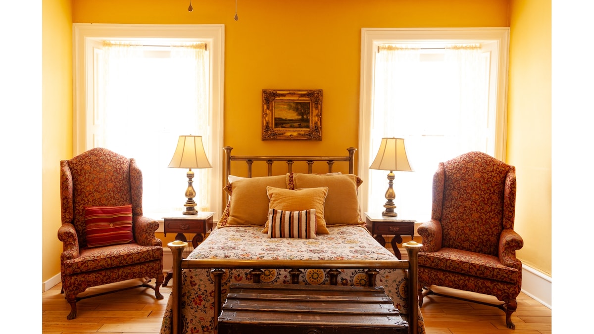 Ein helles, fröhliches Studio im Erdgeschoss mit Kingsize-Bett, südlich des Innenhofs. Holzkamin, himmlisches Badezimmer mit Badewanne/Dusche und natürlichen Pflegeprodukten. » Kostenlose Parkplätze abseits der Straße. » Ein kostenloser Museumspass (ein Wert von 20 US-Dollar, solange der Vorrat reicht). » DirecTV mit Premium HBO-Kanälen. » Leichter Haus, das Aufenthalte von sieben Tagen oder länger hält. » Kaffee, Tee und Mineralwasser vorhanden.