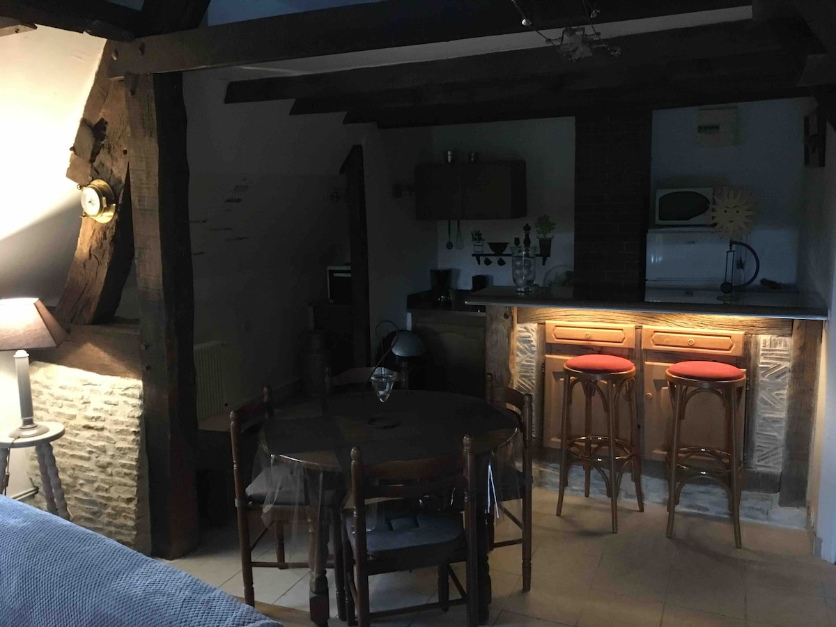 Charmant four à pain ancien en colombages, situé en bord de ruisseau il se compose de : - Salon avec un poêle à bois, - Cuisine, - A l’étage : -salle de douche/WC accessible par une échelle de meunier (voir photos), -chambre avec un lit 160x200 avec vue sur le ruisseau, accessible par une échelle de meunier (voir photos), Chambre et salle de bain ne communiquent pas. Salon de jardin, BBQ, parking privé, bois de chauffage inclus Note autre gite, la Maison de pierres, est à 100m