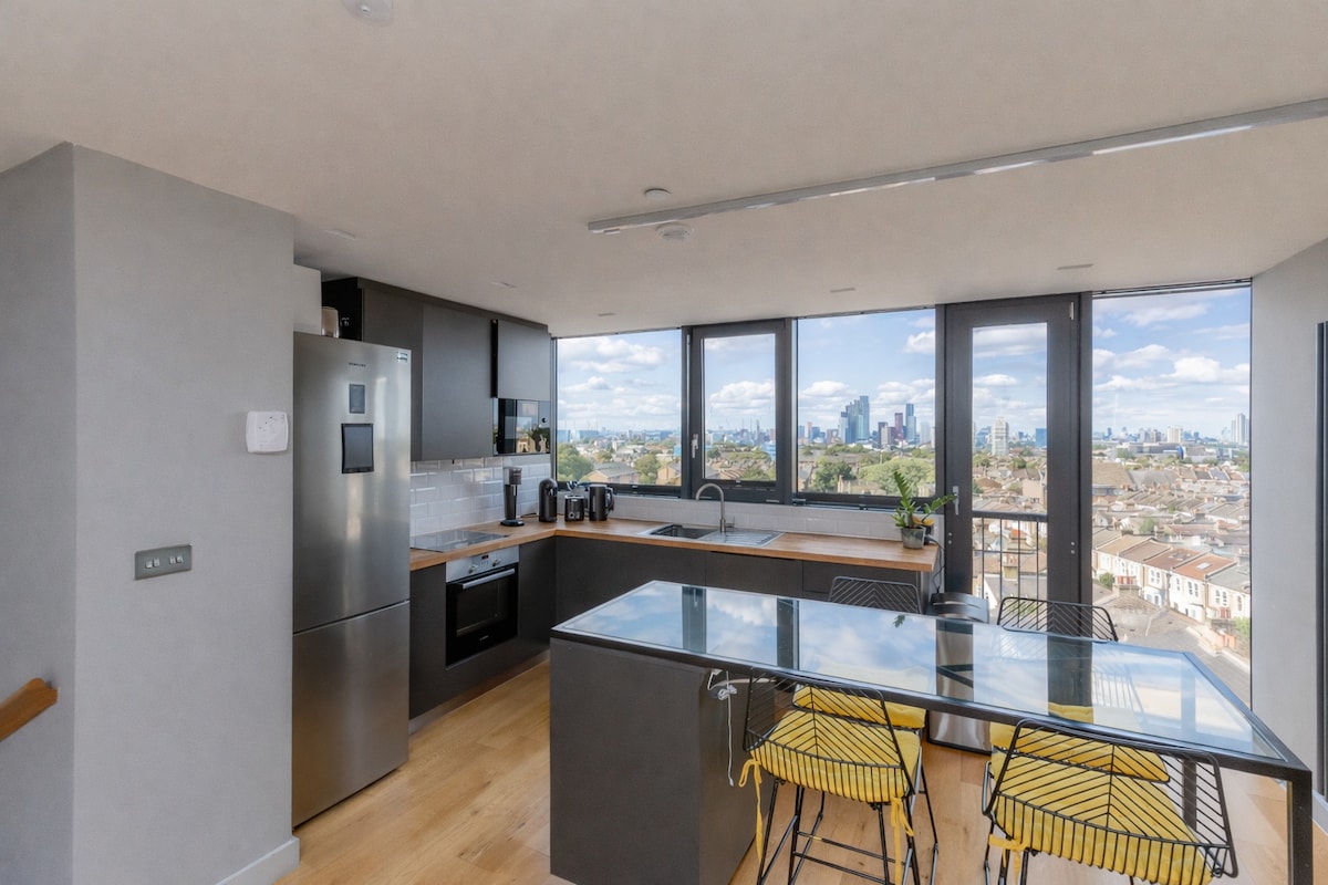 Ein luxuriöses Penthouse mit zwei Kingsize-Betten, zwei voll ausgestatteten Badezimmern und einer ruhigen Lage im obersten Stockwerk in einer der am besten angebundenen Lagen Westlondons. Die Wohnung wurde für Familien und Berufstätige konzipiert und bietet eine spezielle Einrichtung für Remote-Arbeit mit zwei 27-Zoll-Monitoren, 300 Mbs Starlink und vollständiger Klimatisierung. Zu den hochwertigen Innenräumen gehören eine Fußbodenheizung, eine voll ausgestattete Küche, ein Kino-TV mit Sonos und ein privater, sonnendurchfluteter Balkon. Sehr ruhig, sicher und durchweg mit fünf Sternen bewertet.