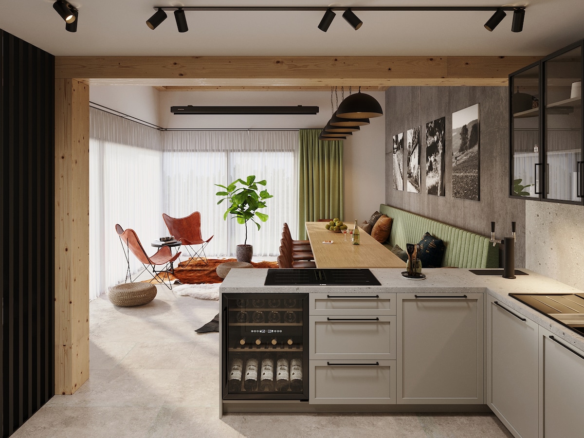 Cozy attic apartment in a house with a private entrance, located in a quiet area. Just minutes from Kalnica Bikepark, Zelená Voda Lake, and medieval castle ruins. The apartment features three rooms, each with a TV, internet, and Netflix. Enjoy fast Wi-Fi, a fully equipped kitchen, and a bathroom with a shower, bathtub, and washing machine. Parking in front of the house, and a garage for bikes. Grocery shopping can be arranged on request. A great choice for both relaxation and adventure.