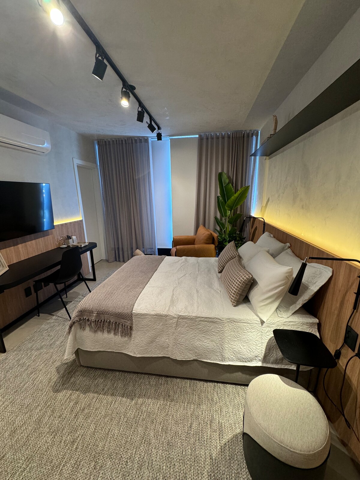 Studio novo e moderno no 13º andar, pensado para oferecer conforto e praticidade. Decoração minimalista e aconchegante, é ideal para casais, viagens a trabalho ou lazer. Localização é um diferencial: no centro de Novo Hamburgo, pertinho da FENAC, hipermercado Bourbon, shopping, estação de trem e rodoviária. Apenas 40 min de Porto Alegre e 1h30 de Gramado. Aqui você encontra tudo para uma estadia completa. Sinta-se em casa!✨