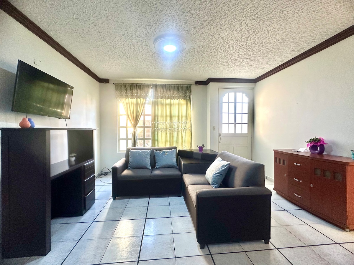Desconecta tus preocupaciones en este espacio amplio y tranquilo que cuenta con las amenidades necesarias para que pases unas vacaciones fabulosas! La casa cuenta con sala, comedor, cocina, 4 habitaciones (1 en planta baja), 2 baños completos, centro de lavado y cochera para un auto. Estamos ubicados a 15 min en coche del centro histórico y una Soriana a 4 cuadras.