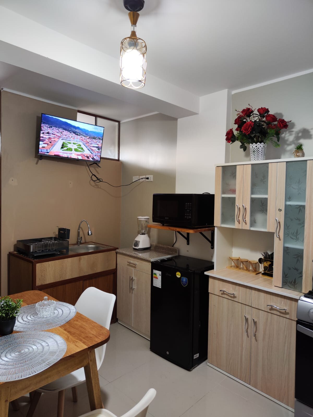 Disfruta de una experiencia con estilo en este alojamiento céntrico. Habitación en el primer piso, con diseño propio, cama Queen Size, baño, cocina y comedor privados, agua caliente, TV 55", Wi Fi, terracita. Tendrás también acceso a otra terraza y bar en el piso superior, con TV de 65" y vista a toda la ciudad.