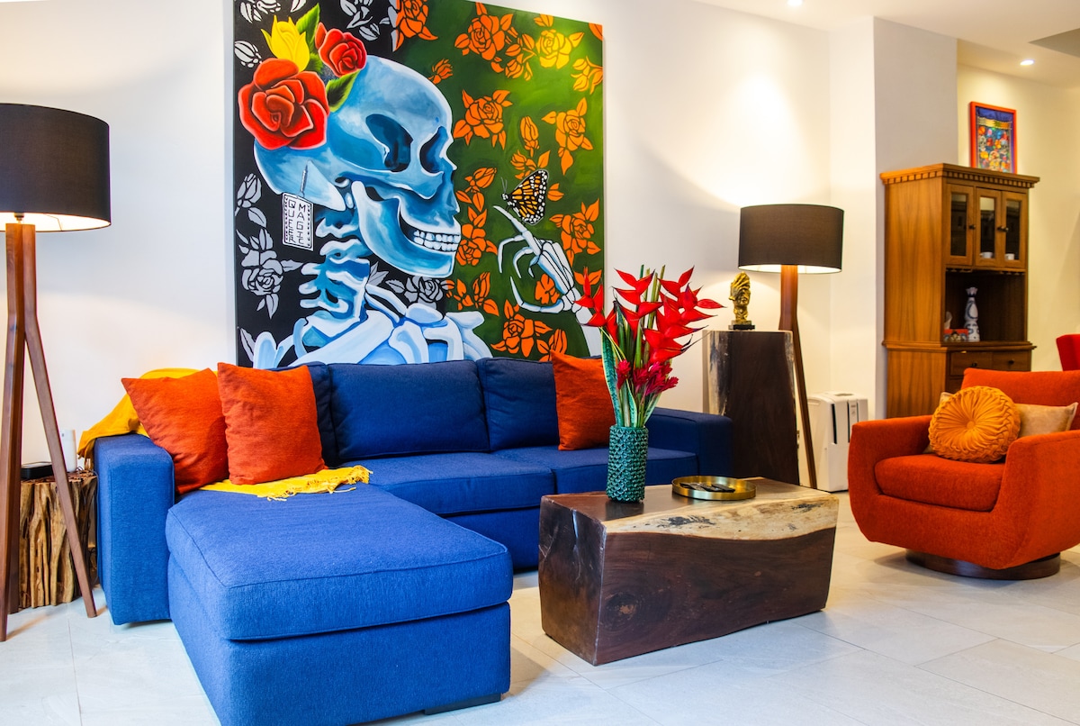 Genieße den tropischen Lebensstil in Puerto Vallarta, der eine geräumige Terrasse und eine voll ausgestattete Dachterrasse mit einem beheizten Infinity-Pool umfasst. Diese Luxus-Wohnung mit 1 Schlafzimmer und 1,5 Badezimmern befindet sich drei Häuserblocks vom Los Muertos Beach entfernt. Wir befinden uns im Herzen der Romantischen Zone, die auch als Altstadt von Puerto Vallarta bezeichnet wird. Die Wohnung ist so gepflegt, dass wir hoffen, dass du dich wie zu Hause fühlst. Daher ist sie sehr gut ausgestattet mit allem, was du vielleicht brauchst.