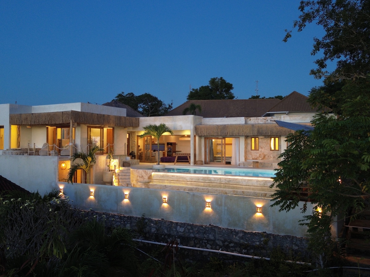 Romantisches Bella Vista, ein wunderschönes Anwesen an einer Klippe mit wunderbaren hohen Decken und offenem Wohnzimmer. Genieße den atemberaubenden Meerblick, während du dein Frühstück auf unserem schönen Essbereich im Freien genießt. Bella Vista bietet privaten Zugang zu einem der versteckten Schätze Balis, dem abgelegenen Secret Point Beach. Erkunde Meereshöhlen und Felsenpools oder entspanne einfach am Infinity-Pool mit Blick auf den Mahana Point Surf Break, mit wunderschönen Sonnenuntergängen jeden Nachmittag. In der Nähe der spektakulären und zerklüfteten Blauen Lagune.