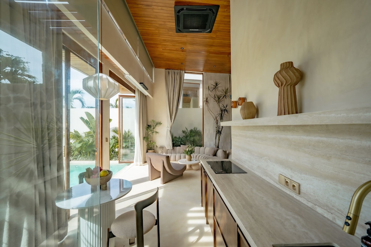 Willkommen in Zama by NAKÚ, einer privaten Studio-Villa, die für entspannten Luxus im Herzen von Uluwatu konzipiert wurde. Das durchdacht gestaltete Zama verbindet natürliche Texturen, sanftes Licht und modernen Komfort und lässt sich von der ikonischen organischen Ästhetik von Tulum inspirieren, um den perfekten tropischen Rückzugsort zu schaffen. Mit ihrem eigenen privaten Pool und dem Outdoor-Loungebereich ist diese Villa ideal für Paare, Alleinreisende oder Digital Nomads, die sowohl eine entspannende als auch eine komfortable Unterkunft suchen.