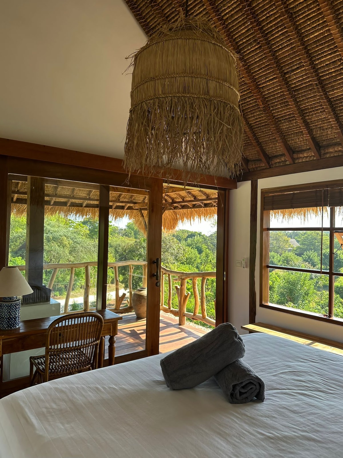 Tauche ein in einen luxuriösen Boho-Rückzugsort, nur 2 Minuten vom Strand entfernt, wo eine ruhige Villa mit 2 Schlafzimmern auf dich wartet. Jede Suite verfügt über ein elegantes Bad, einen privaten Tauchpool, Klimaanlage, WLAN, eine Küche und einen raffinierten offenen Wohnbereich. Die Villa ist von natürlichem Licht durchflutet und mit kunsthandwerklichem Dekor geschmückt. Sie lädt zu Sonnenaufgangsreflexionen, mondbeschienenen Bädern, inspiriertem Faulenzen und Gourmet-Momenten mit Stil ein.