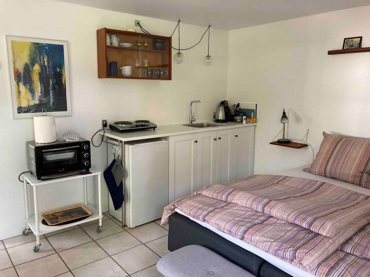 Willkommen in einer Wohnung mit einer einzigartigen Stimmung. Die Wohnung verfügt über ein Schlafzimmer und ein kombiniertes Esszimmer und eine kleine Küche. Es gibt auch ein großes Wohnzimmer. Du teilst dir das Badezimmer mit dem Eigentümer und das Badezimmer befindet sich in einem separaten Gebäude und hast einen eigenen Eingang. Die Wohnung befindet sich 3 km vom Strand entfernt - dem besten Strand an der Nordküste Seeland und außerdem 1 km vom Wald entfernt, Tisvilde Hegn, der Teil des Nationalparks ist - den Königen Nordseeland.