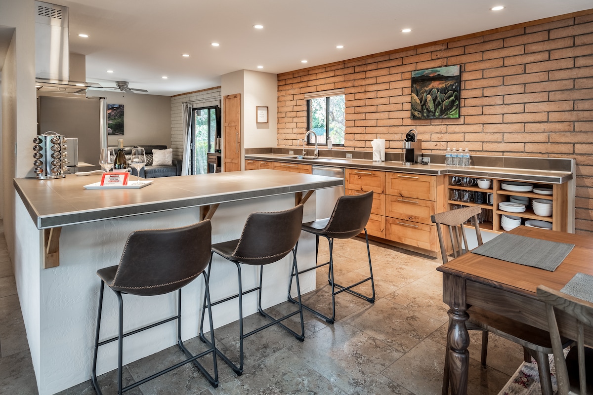Beautiful, modern, mid-century style Sedona home with spectacular Red Rock Mountain Views & wide open living spaces. On a quiet cul-de-sac nestled below majestic Coffee Pot Rock. Fully equipped with everything you need for a perfect Sedona stay! Private 2-3 person Caldera Spa & terrific outdoor spaces with gorgeous views. Shaded patio looking out upon Sugarloaf & Thunder Mountains. Just a few blocks down from the Sugarloaf trail which offers spectacular, easy to moderate hiking.