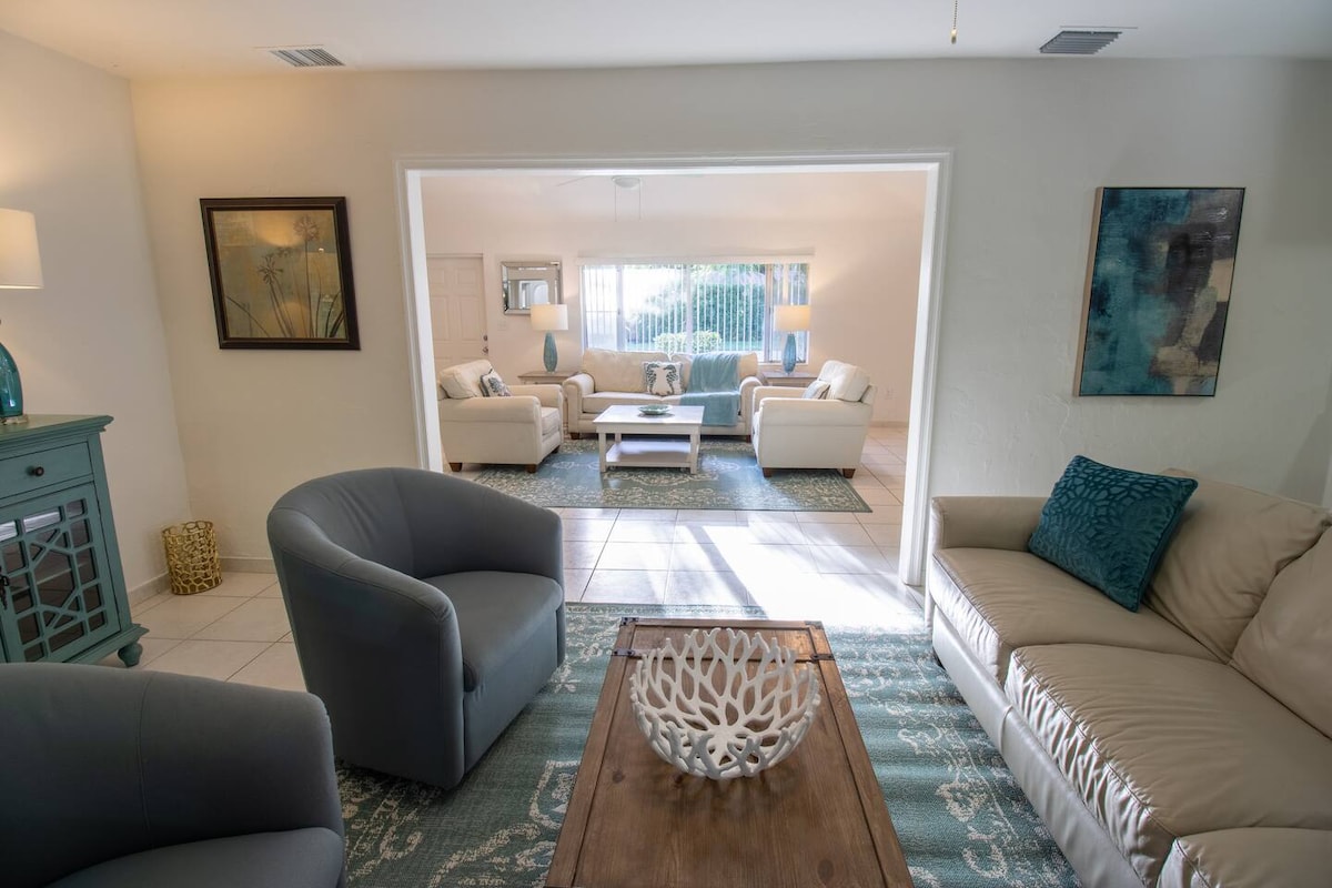 Dieses luxuriöse Privathaus im schönen Boca Raton liegt nur eine kurze Fahrt vom Strand entfernt. Genieße ultimative Privatsphäre in unserem brandneuen beheizten Pool und Whirlpool. Zahlreiche Einkaufsmöglichkeiten und Restaurants sind alle innerhalb von Minuten erreichbar. Lehne dich zurück und entspanne dich in diesem neu renovierten, ultra-privaten Luxus-Ferienhaus. Bringen Sie einfach Ihren Koffer und Badeanzug mit und genießen Sie! Voll ausgestattete Küche mit allem, was du brauchst........Innen oder draußen. Schreibtisch/Arbeitsplatz für Home Office und fünf übergroße Smart-TVs zur Unterhaltung.