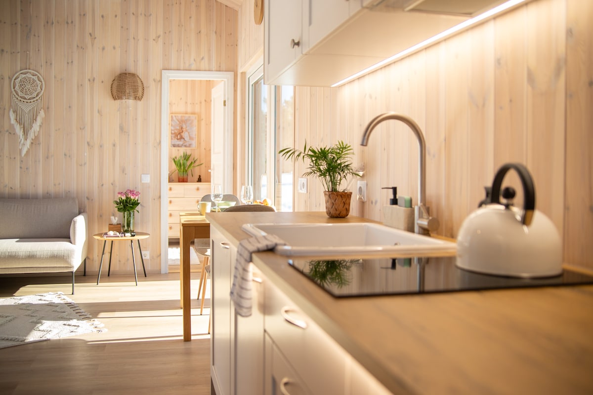 A modern Nordic tiny house on the edge of Põhja-Kõrvemaa Nature Reserve, made for slow summer days and warm evenings under open sky. The cabin sits in its own sun-filled meadow clearing surrounded by forest, with large windows that flood the interior with light and a private terrace made for long evenings. Two bedrooms (1 being a toddler one), a fully equipped kitchen, a children's room with toys, and a sleek bathroom. Lahemaa hiking trails and Baltic beaches within easy reach.
