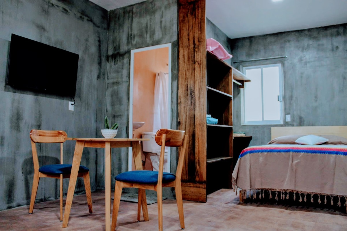 Looking for comfort, style, and excellent connectivity? This beautiful one-bedroom apartment is perfect for a relaxing, modern, and well-equipped stay, ideal for couples or remote travelers. It includes breakfast with an Oaxacan touch, a queen-size bed, portable air conditioning, a TV in the living room and bedroom, a fully equipped kitchen, a modern and spacious bathroom, Starlink internet, and a pleasant outdoor patio.
