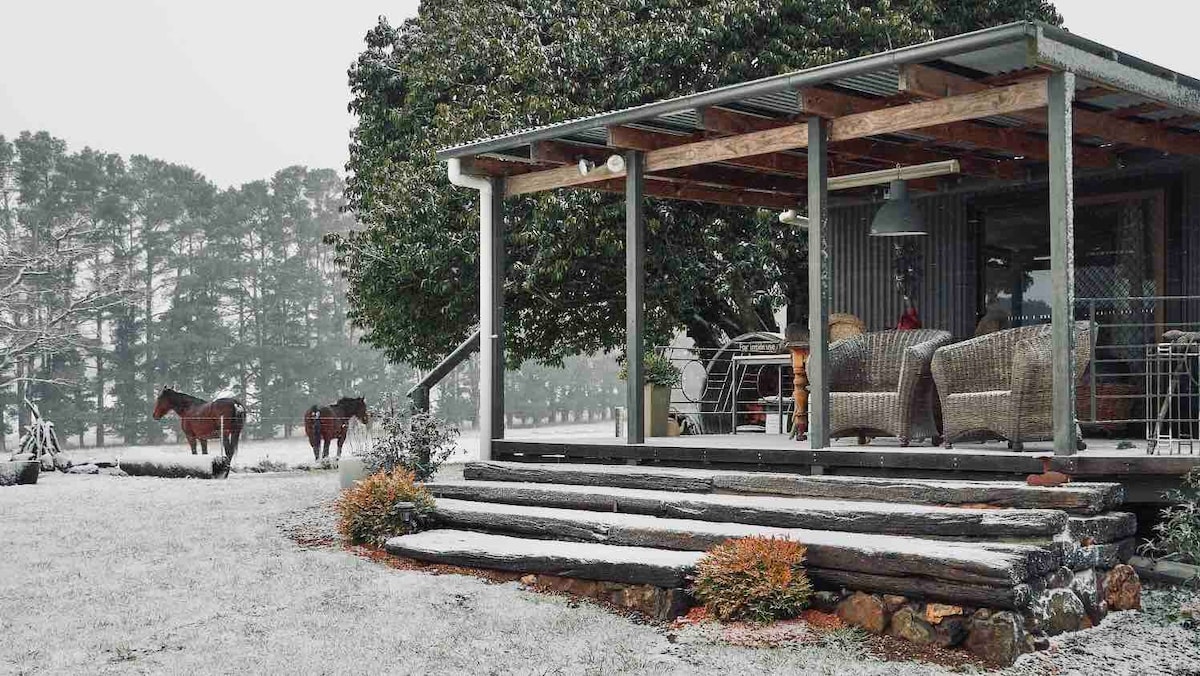 The Hare & Hound is a luxury, renovated farmhouse located in Regional NSW. * Now with high speed Starlink wifi & central heating (firewood now BYO)* Nestled on 380 acres of pristine farmland, with 1km of Fish River frontage through the property. Enjoy the serenity of hearing nothing but frogs, birds & farm animals while taking in the view of rolling hills- escape busy and slow down for a while. Conveniently located to Mayfield Gardens, Jenolan Caves, Kanangra Walls & Waldara (only 5kms).