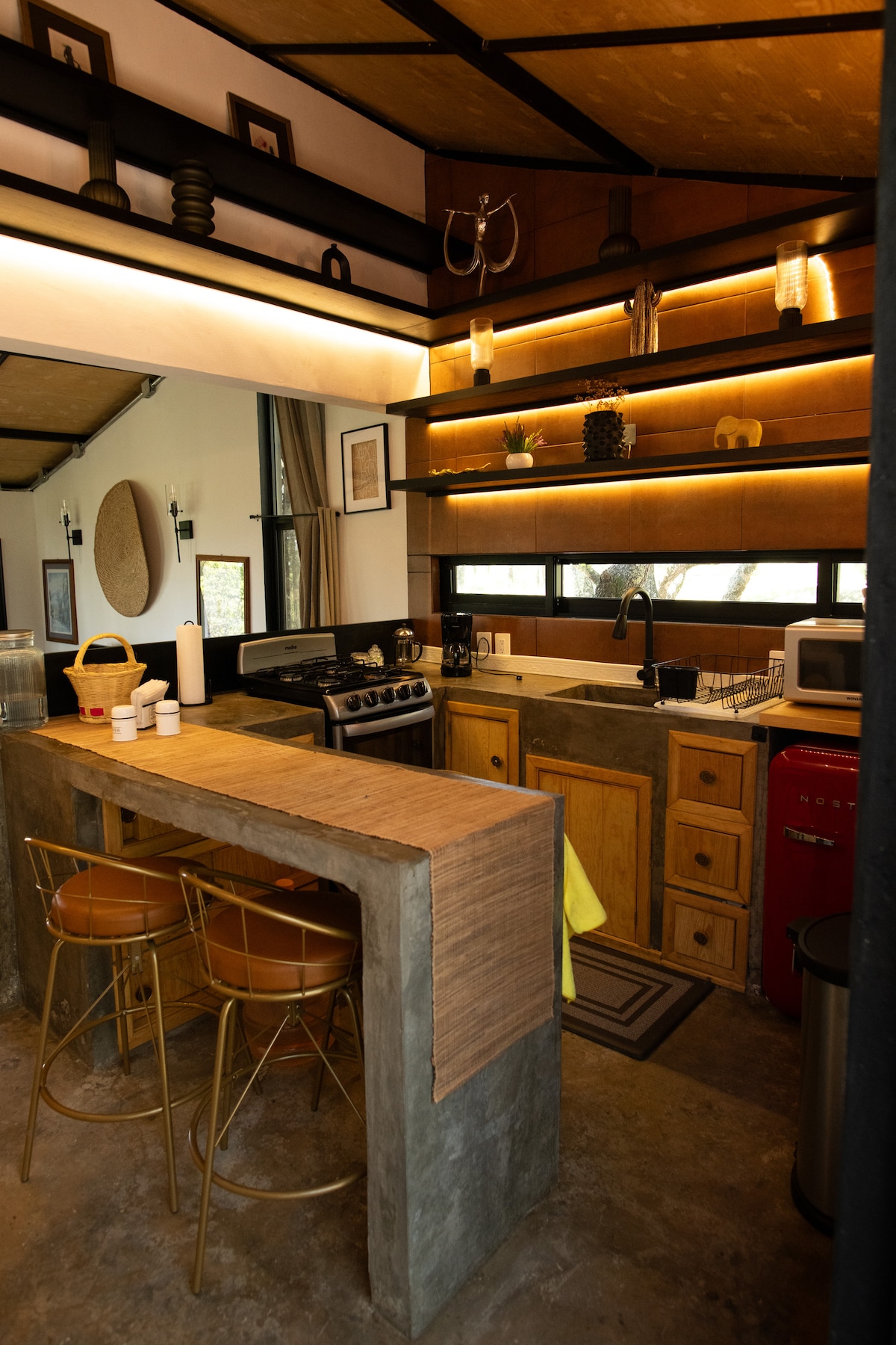 Cabaña Olea es una mini cabaña que te brinda un espacio acogedor, privado y completamente rodeado de la naturaleza. Dentro de un fraccionamiento seguro, no tendrás que preocuparte de nada.