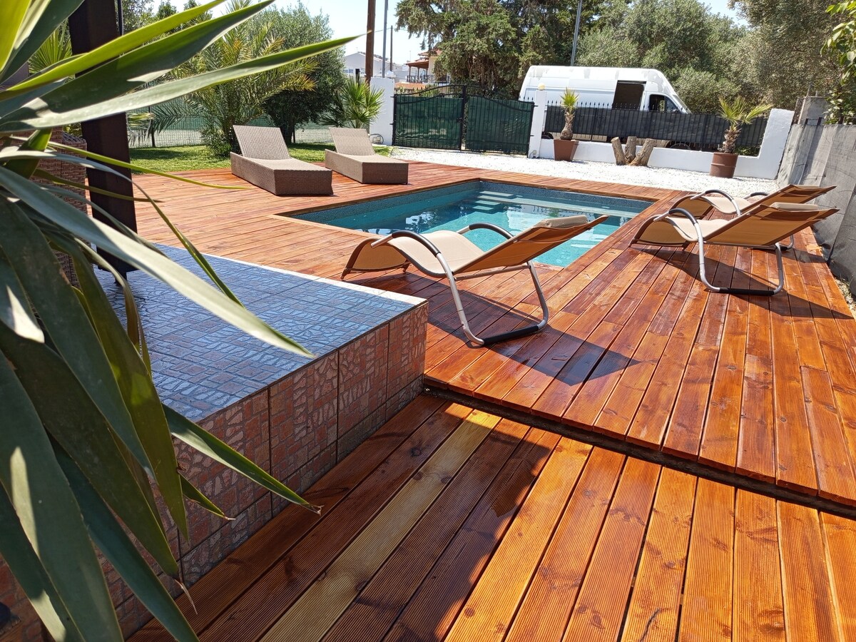 Entspannen Sie sich und genießen Sie Ihren Urlaub in dieser ruhigen und eleganten Unterkunft. Das Haus liegt 200 Meter vom Meer, 500 Meter von Supermarkt / Food Courts und Strandbar entfernt. Es ist ideal, um sich in einem komplett renovierten Haus zu entspannen, aber auch das Nachtleben 5 Kilometer entfernt in Asprovalta mit vielen Möglichkeiten zu erleben.