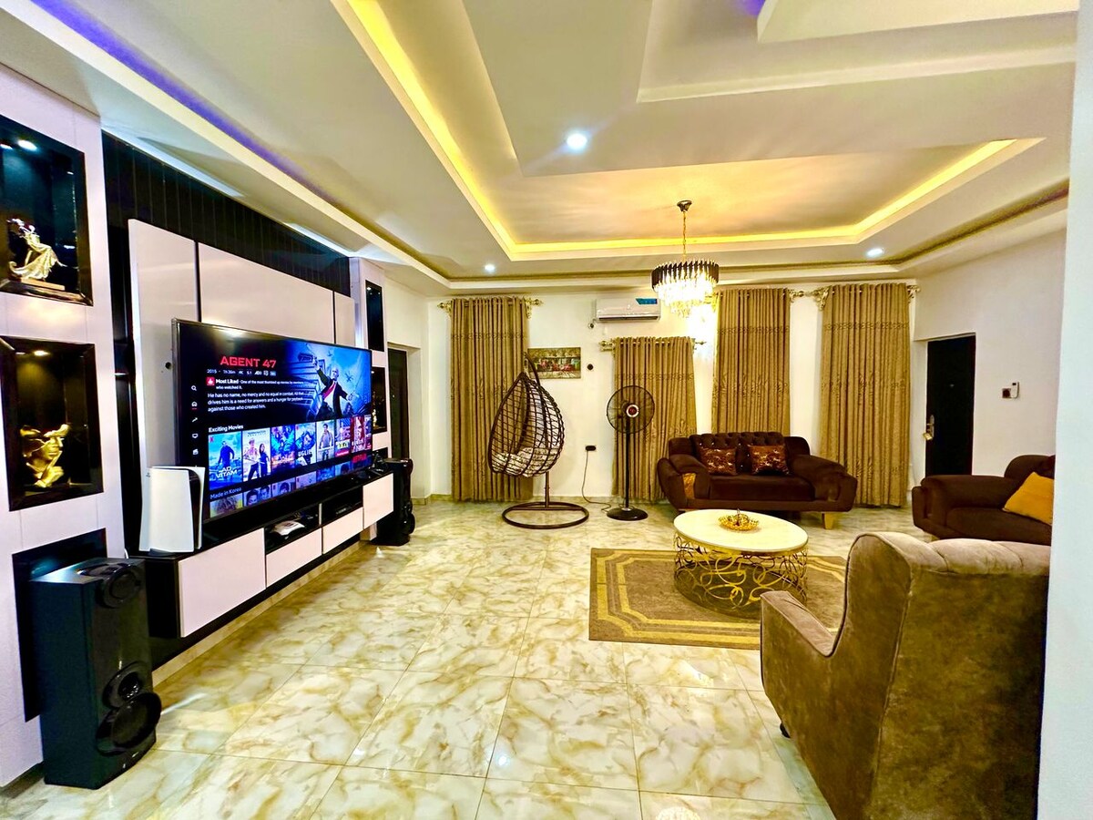 Two mins drive to Asaba int airport, 10 mins drive to Asaba shopping mall, 7 mins drive to state and federal secretariats . We offer private family time, photography services, movie shooting studios, house parties, birthday parties, bridal shower parties, bachelors night, secret parties. *APARTMENT FEATURES THE FOLLOWING AMENITIES :* Netflix YouTube Dstv Air Conditioners Free wifi Internet(Starlinks) 24/7Hrs Standby Nepa, Inverter & Generator. Security (CCTV) Water Heater Etc.