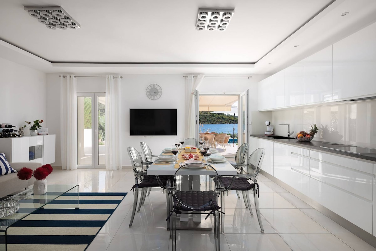 Villa -direct on sea, beach area, bbq, parking : )