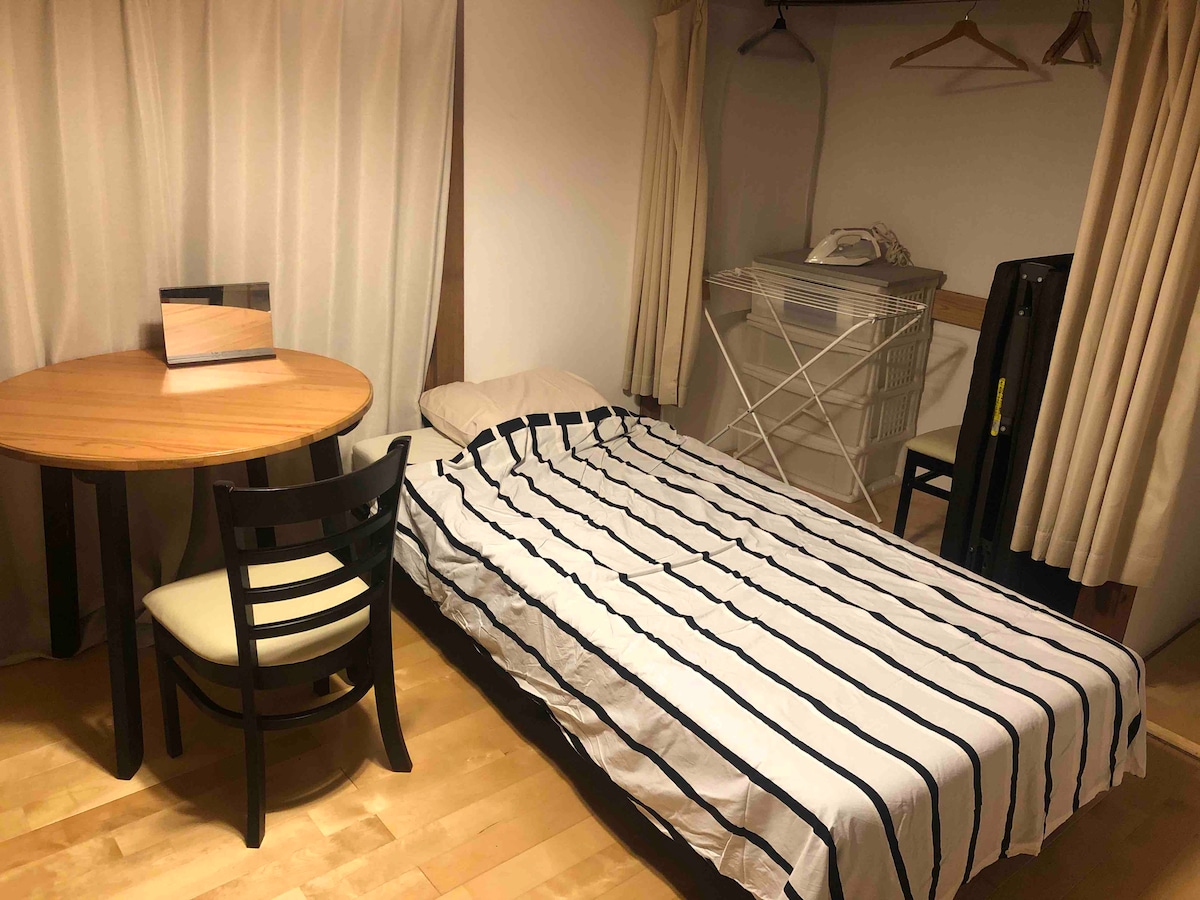 A clean and cozy one-room apartment for a woman, conveniently located just 1 minute from the subway and bus stop. 24-hour shops are nearby. The room includes cooking utensils, a rice cooker, and a semi-double Sealy bed for a comfortable sleep. There are also 3 washer-dryers in the building. The maximum stay is 180 days a year, so please book early. This resets every April. Updated pricing for quality maintenance: from ¥5,500/night in 2026, with possible slight increases due to Japan’s inflation.